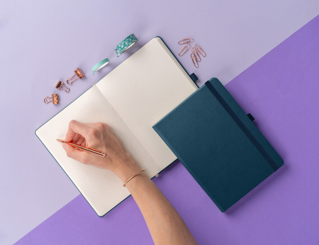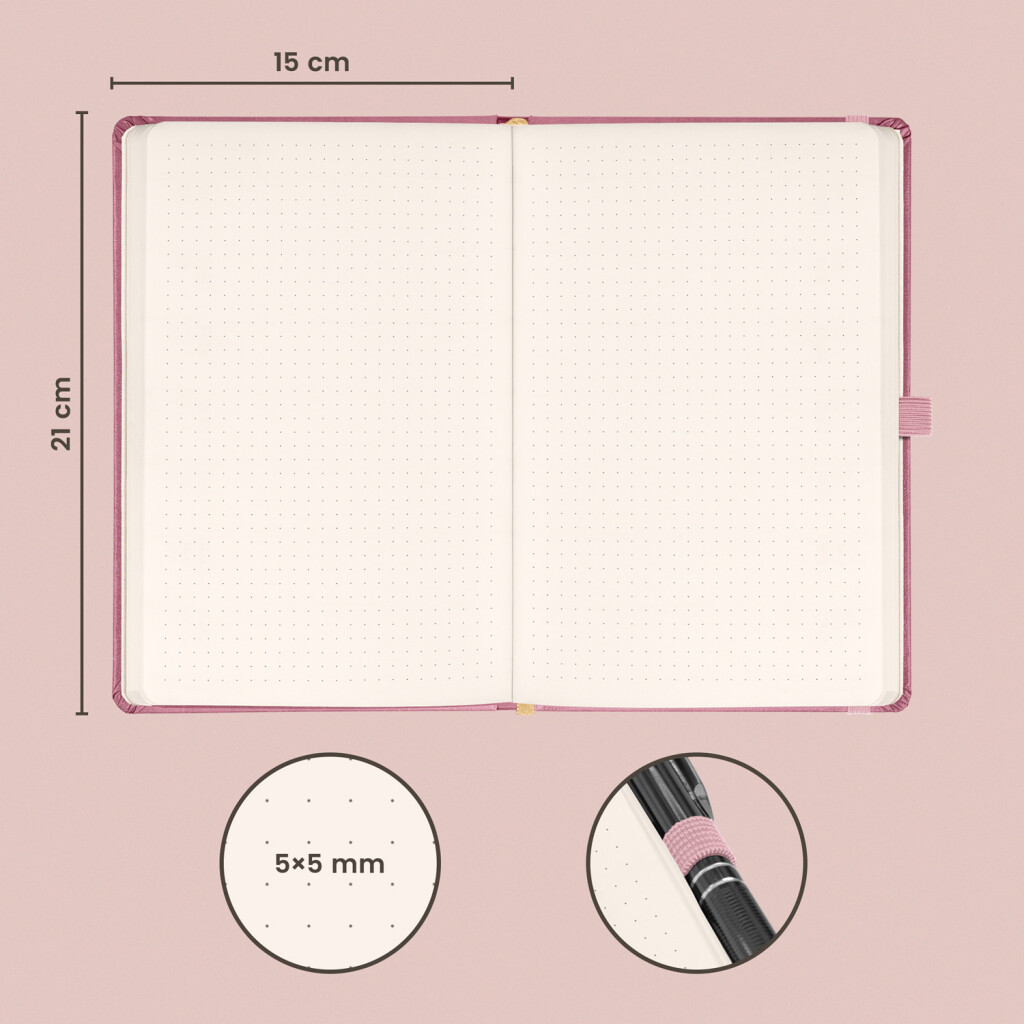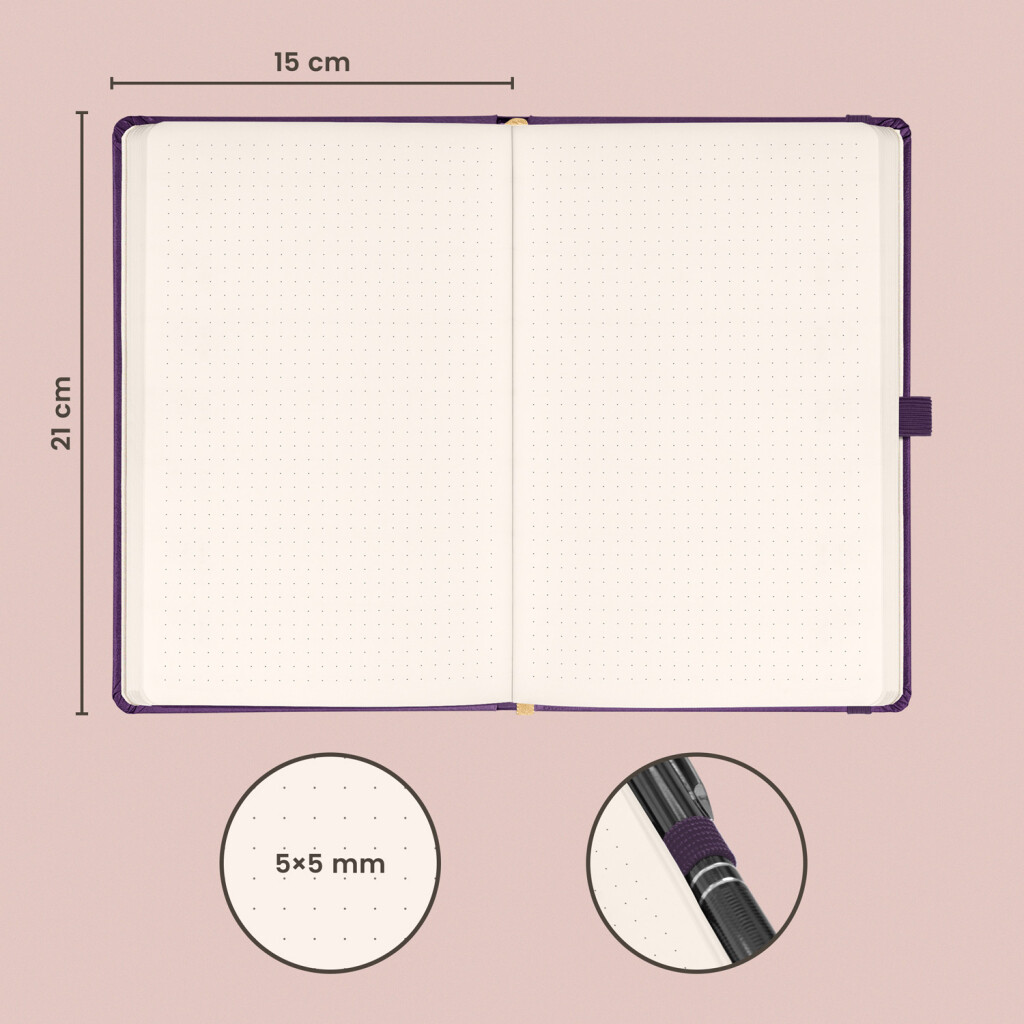 Tečkovaný notes Aprint Neo 2025 ve fialovém provedení. Klasika i elegance, nejžádanější povrch, na který lze vyrazit firemní loga s jemnou strukturou.