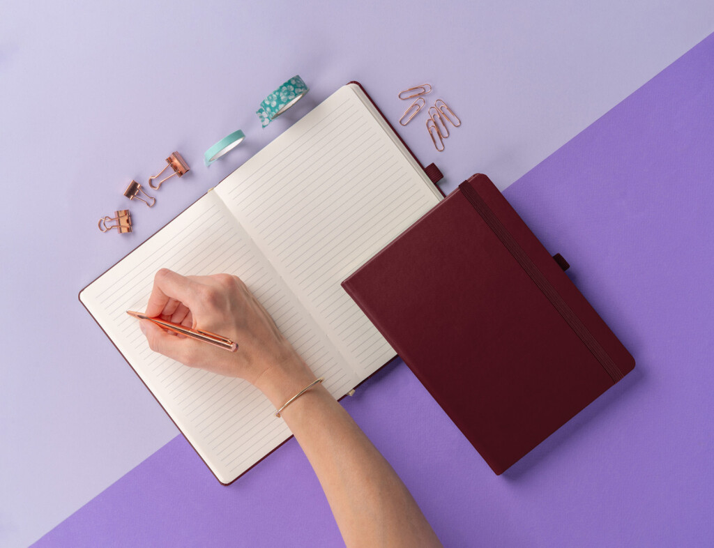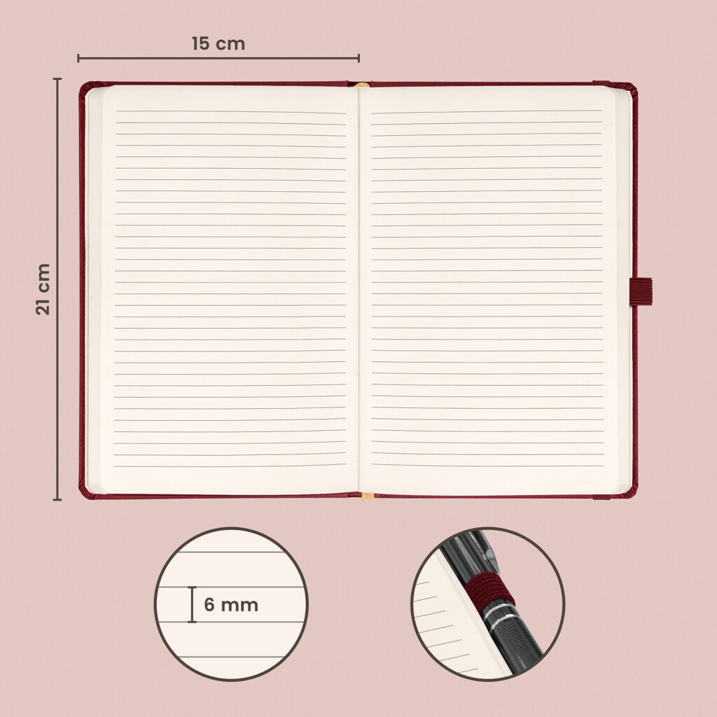 Linajkový notes Balacron 2025 v provedení bordó. Povrch diáře si získal oblibu díky kvalitnímu svrchnímu materiálu, který je extrémně odolný vůči vnějšímu poškození.