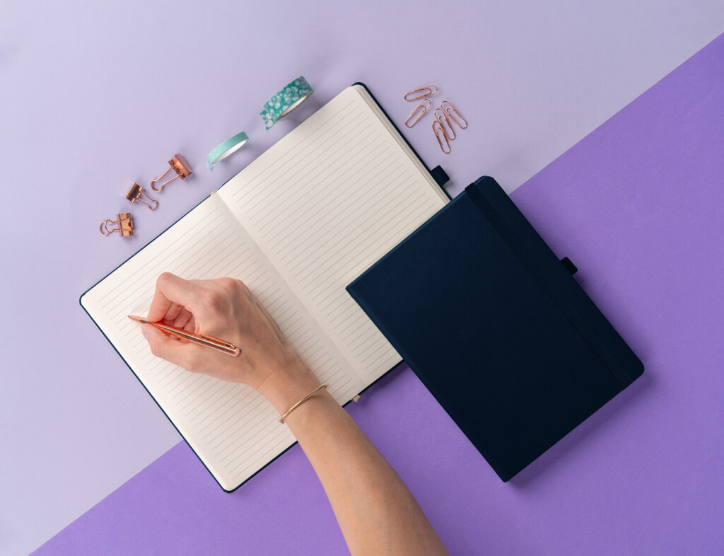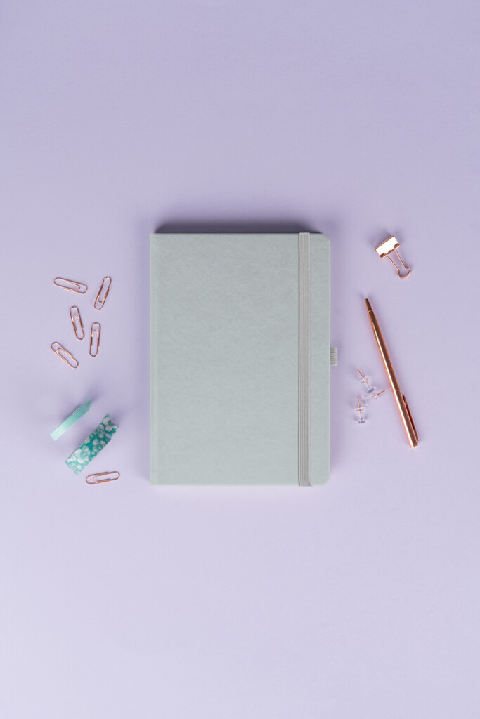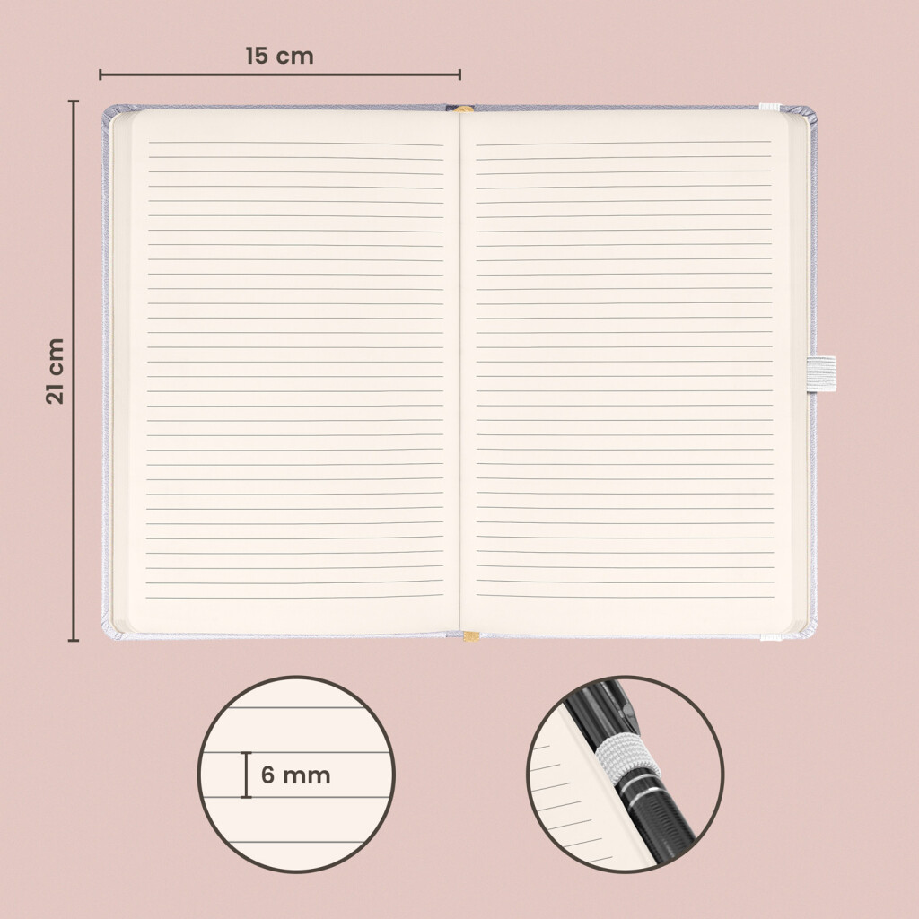 Vázba: tuhá knižní s gumičkou a poutkem na tužku