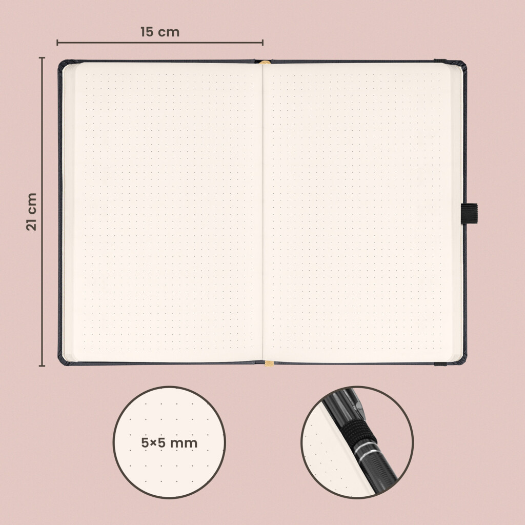 Tečkovaný notes Balacron 2025 v provedení bordó. Povrch diáře si získal oblibu díky kvalitnímu svrchnímu materiálu, který je extrémně odolný vůči vnějšímu poškození.