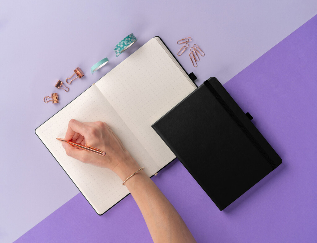 Vazba: tuhá knižní s gumičkou a poutkem na tužku