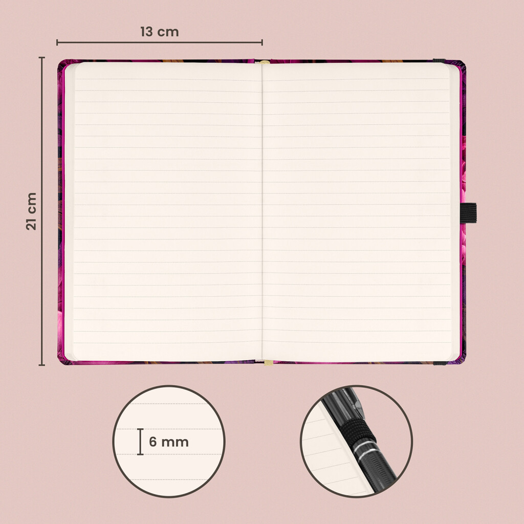 Kvalitní linkovaný notes v pevných deskách s uzavíráním na gumičku, poutkem na tužku a vnitřní kapsou na drobnosti. Uvnitř najdete 172 tečkovaných stran na žlutém papíře pro zapisování všech vašich nápadů. Linajkový zápisník můžete použít jako deník, k zapisování hlubokých myšlenek nebo pracovních poznámek.