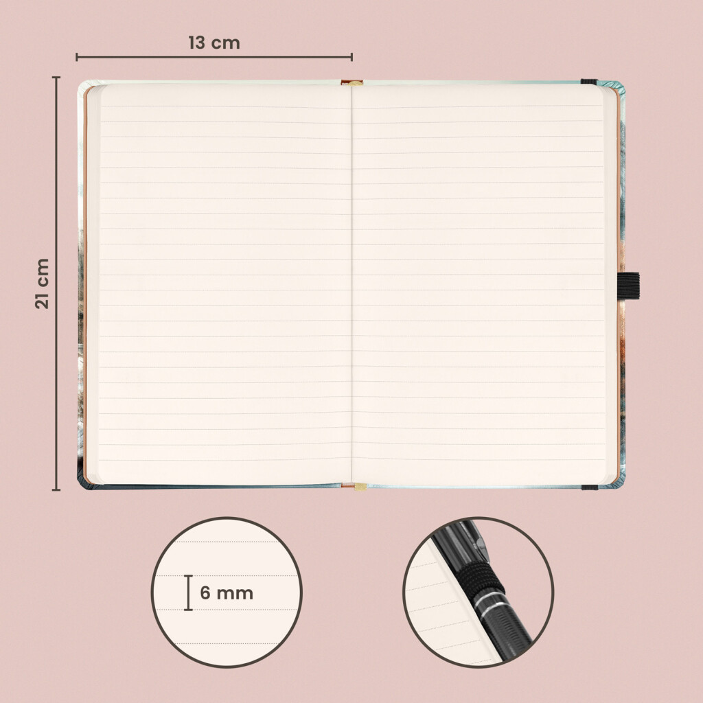 Kvalitní linkovaný notes v pevných deskách s uzavíráním na gumičku, poutkem na tužku a vnitřní kapsou na drobnosti. Uvnitř najdete 172 tečkovaných stran na žlutém papíře pro zapisování všech vašich nápadů. Linajkový zápisník můžete použít jako deník, k zapisování hlubokých myšlenek nebo pracovních poznámek.