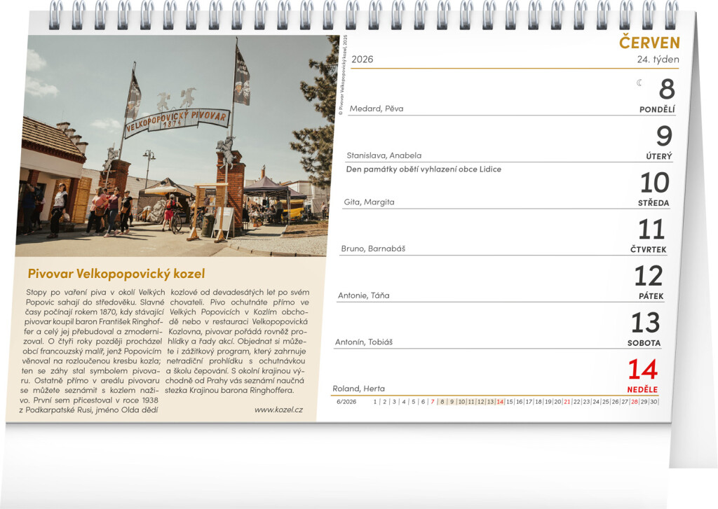 Máte rádi pivo a rádi objevujete zajímavé pivovary? Právě pro vás je určen stolní kalendář plný tipů na výlety za zlatavým mokem. Dozvíte se, kde se u nás vaří nejznámější piva, ale také které malé pivovary byste měli při svých cestách za pivem rozhodně navštívit. Týdenní kalendář pro každého pivaře obsahuje také svátky, památné dny, fáze Měsíce a přehled na celý rok 2026 a 2027.