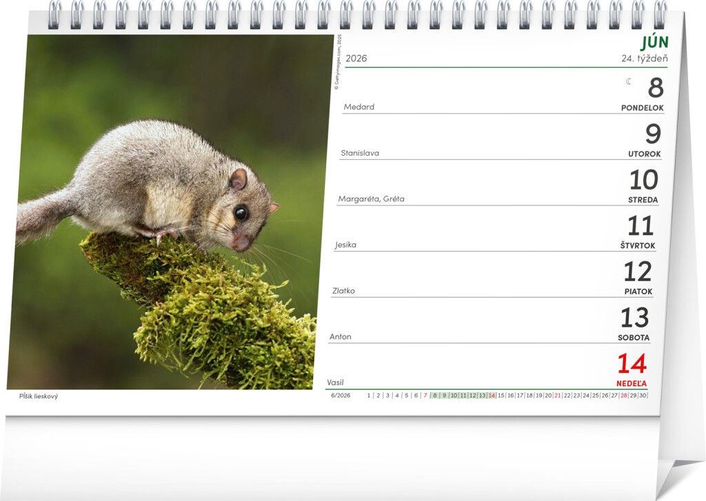Oblíbený stolní kalendář obsahuje množství důležitých informací pro každého lovce. Najdete v něm časy východu a západu Slunce a Měsíce na Slovensku, informace o myslivosti a přírodních novinkách v průběhu roku, jakož i přehled lovecké sezóny na kožešinovou a lovnou zvěř. Tyto praktické informace doplňují krásné fotografie divoké přírody od fotografa Miroslava Hlávka a kalendárium se slovenskými názvy, svátky a památnými dny.