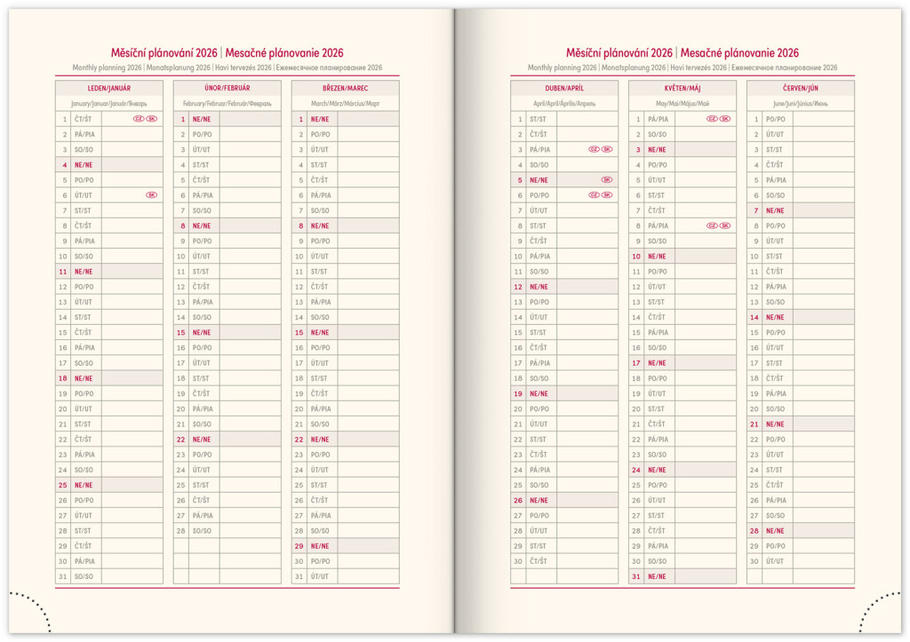 - měsíční plánovací kalendář 2026