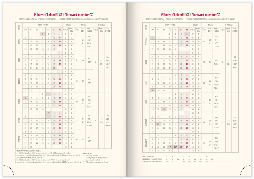 - pracovní plánovací kalendář