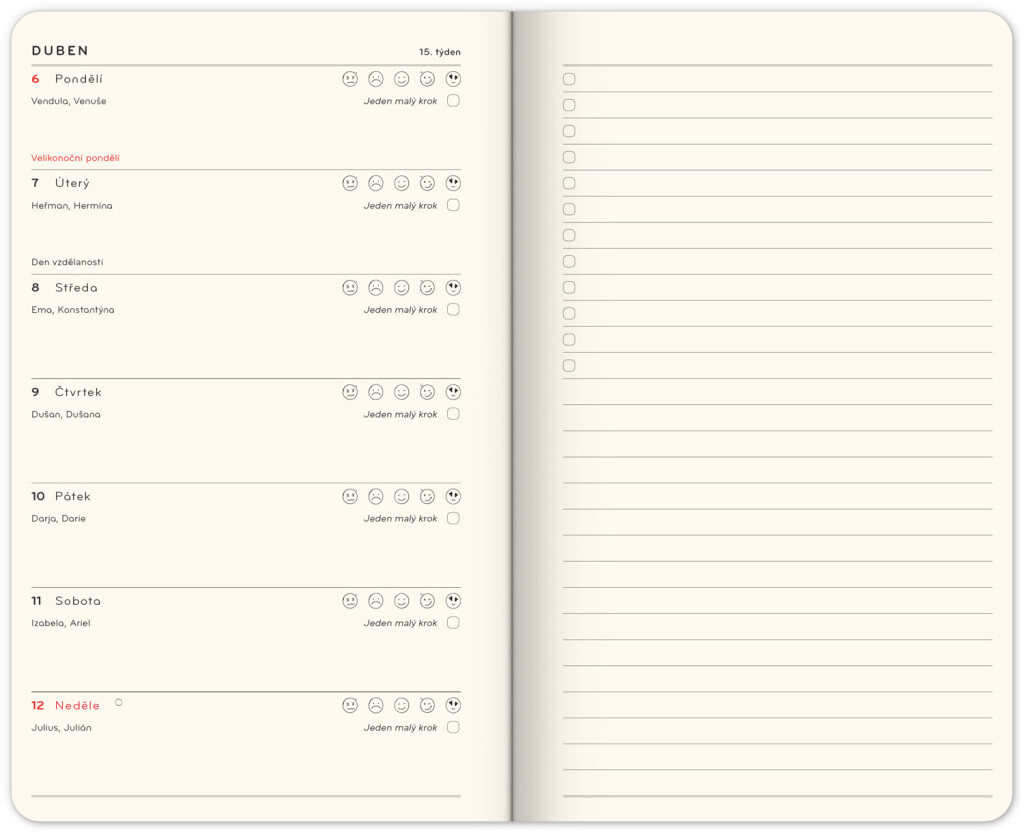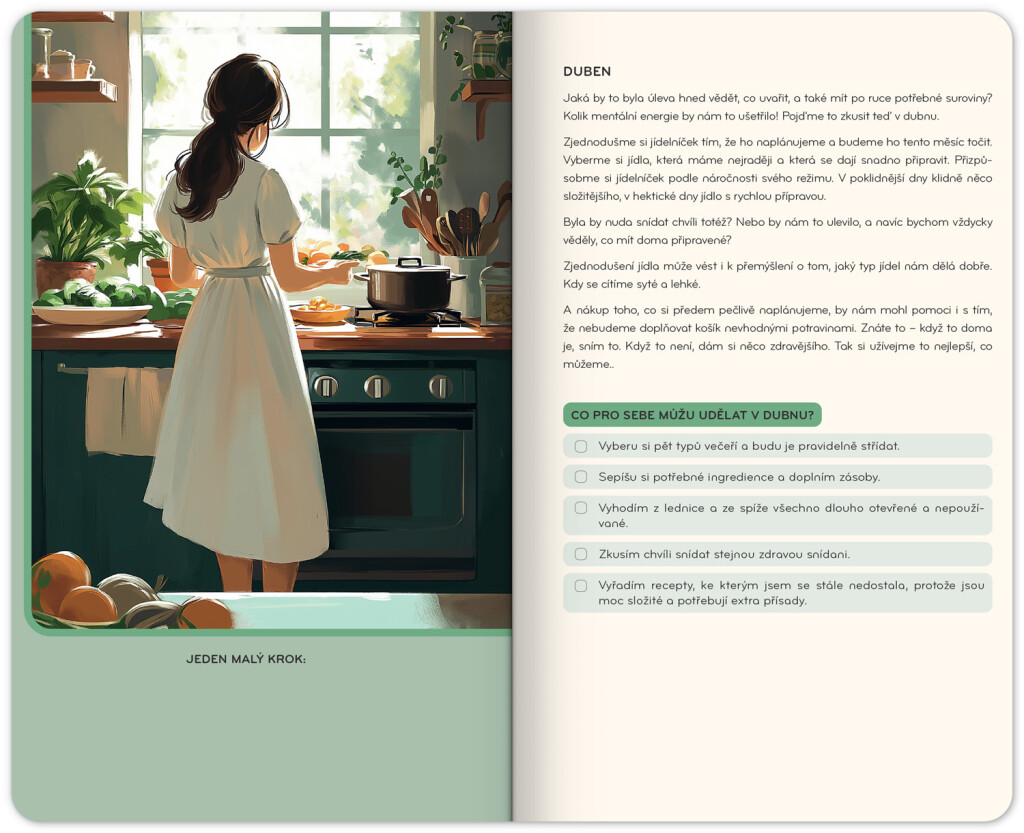 Laskavý diář vás provede rokem plným zjednodušování - každý měsíc se zaměří na jednu oblast, ve které si můžeme usnadnit život a nezatěžovat se spoustou zbytečných věcí. Přináší praktické tipy, inspiraci a jemné pošťouchnutí, jak se uvolnit a najít radost v obyčejných věcech, které jsou ve skutečnosti mnohem významnější, než se zdá. Tím, že se zbavíme zbytečností, nejen těch materiálních, vytvoříme prostor pro to, co je pro nás skutečně důležité. Diář má horizontální uspořádání s bohémským kalendáriem a prostorem pro poznámky. Obsahuje také praktický měsíční přehled, který je ideální pro plánování dovolené nebo prázdnin.