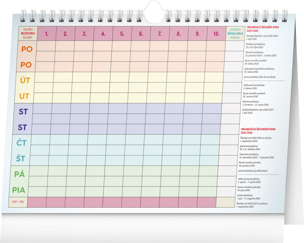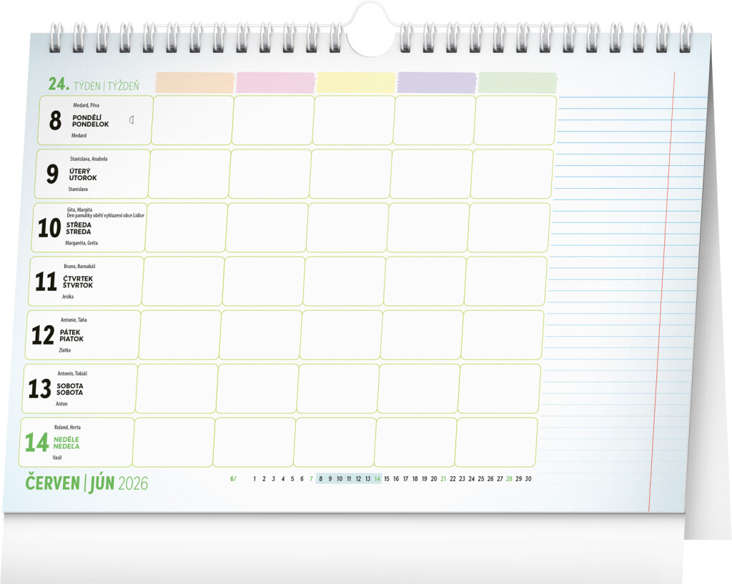 Pro zvládnutí rodinného chaosu je k dispozici týdenní rodinný kalendář, který naplánuje čas až pro pětičlennou rodinu. Kalendář můžete použít jako stolní kalendář nebo jej zavěsit na zeď pomocí háčku. Obsahuje český a slovenský kalendář.