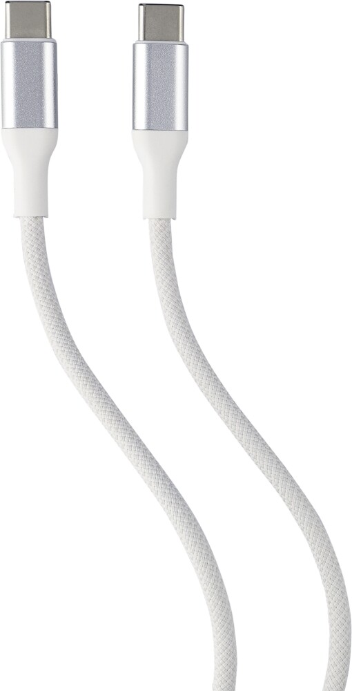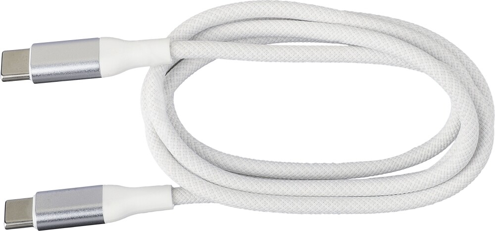 Nylonový datový a nabíjecí kabel Type-C na Type-C o délce 1 metr. Rychlost přenosu dat je 120 Mbps. Hliníková objímka je zvětšena, aby umožňovala tisk. 35W nabíjecí výkon. Jednotlivě baleno v hnědé kartonové dárkové krabičce.Rozměry: 100 cm