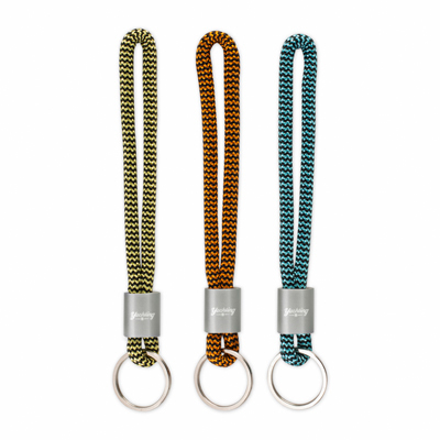 Nylonový přívěsek s laserem vygravírovaným logem na hliníkové sponě. 2-tónová nylonová šňůrka (průměr 0,8 cm) ve vybraných barvách, 30 mm plochý kroužek.
