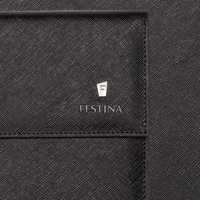 Obaly "Chronobike" jsou perfektní kancelářské doplňky: jednoduché a elegantní. Veganská kůže s texturou saffiano je měkká a luxusní. Je podepsán decentním štítkem „F“ v ikonickém lichoběžníkovém tvaru, který se nachází na cifernících hodinek Festina. Tento ikonický podpis, který se nachází také na klipech na pera, umožňuje vytvořit skutečný pocit soudržnosti prostřednictvím kolekce a umožňuje fantastické párování dárkových souprav. Vnitřek složky je elegantní a organizovaný s množstvím přihrádek na karty a dokumenty, jakož i přihrádky na pero. Zapínání je magnetické. Každý detail byl pečlivě navržen, každá strana luxusní papírové náplně je podepsána logem Festina. Tato položka je dostupná ve 2 velikostech: A4 a A5.