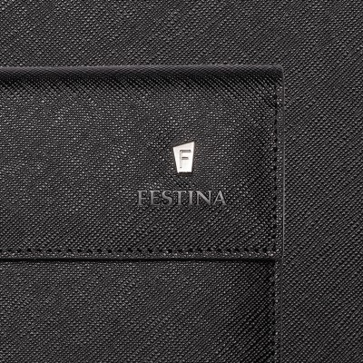 Obaly "Chronobike" jsou perfektní kancelářské doplňky: jednoduché a elegantní. Veganská kůže s texturou saffiano je měkká a luxusní. Je podepsán decentním štítkem „F“ v ikonickém lichoběžníkovém tvaru, který se nachází na cifernících hodinek Festina. Tento ikonický podpis, který se nachází také na klipech na pera, umožňuje vytvořit skutečný pocit soudržnosti prostřednictvím kolekce a umožňuje fantastické párování dárkových souprav. Vnitřek složky je elegantní a organizovaný s množstvím přihrádek na karty a dokumenty, jakož i přihrádky na pero. Zapínání je magnetické. Každý detail byl pečlivě navržen, každá strana luxusní papírové náplně je podepsána logem Festina. Tato položka je dostupná ve 2 velikostech: A4 a A5.