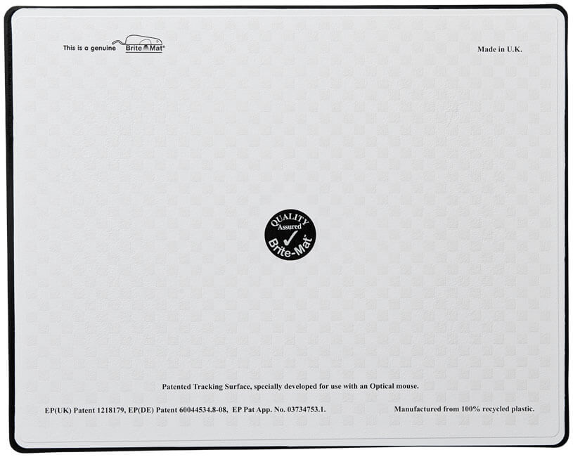 Obdélníková podložka pod myš Brite-Mat®. Jedna z nejprodávanějších podložek pod myš s tvrdou opěrkou na trhu. Nabízí bezkonkurenční kvalitu díky naší patentované technice označování uvnitř formy. Lisováno ze 100% interně recyklovaného plastu. 100 % dokonalé ovládání myši pro standardní kuličkové a optické myši. Laminovaný papír a recyklovaný plast.
