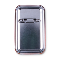 Obdélníkový odznak (buton) s plnobarevným potiskem na papírovém podkladu se zavíracím špendlíkem na zadní straně. Každá položka je zabalena v sáčku.