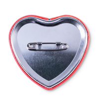 Odznak (buton) ve tvaru srdce nebo hvězdy s plnobarevným potiskem na papírovém podkladu se zavíracím špendlíkem na zadní straně. Každá položka je zabalena v sáčku.