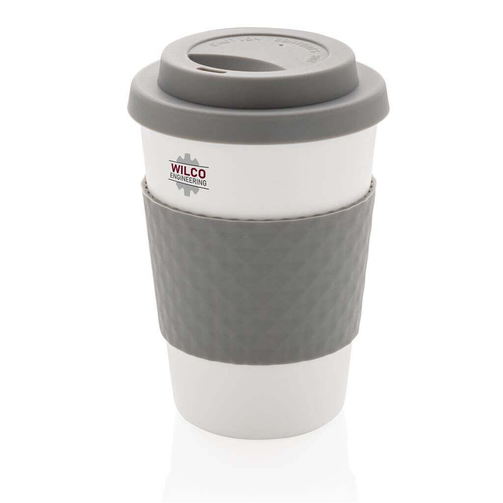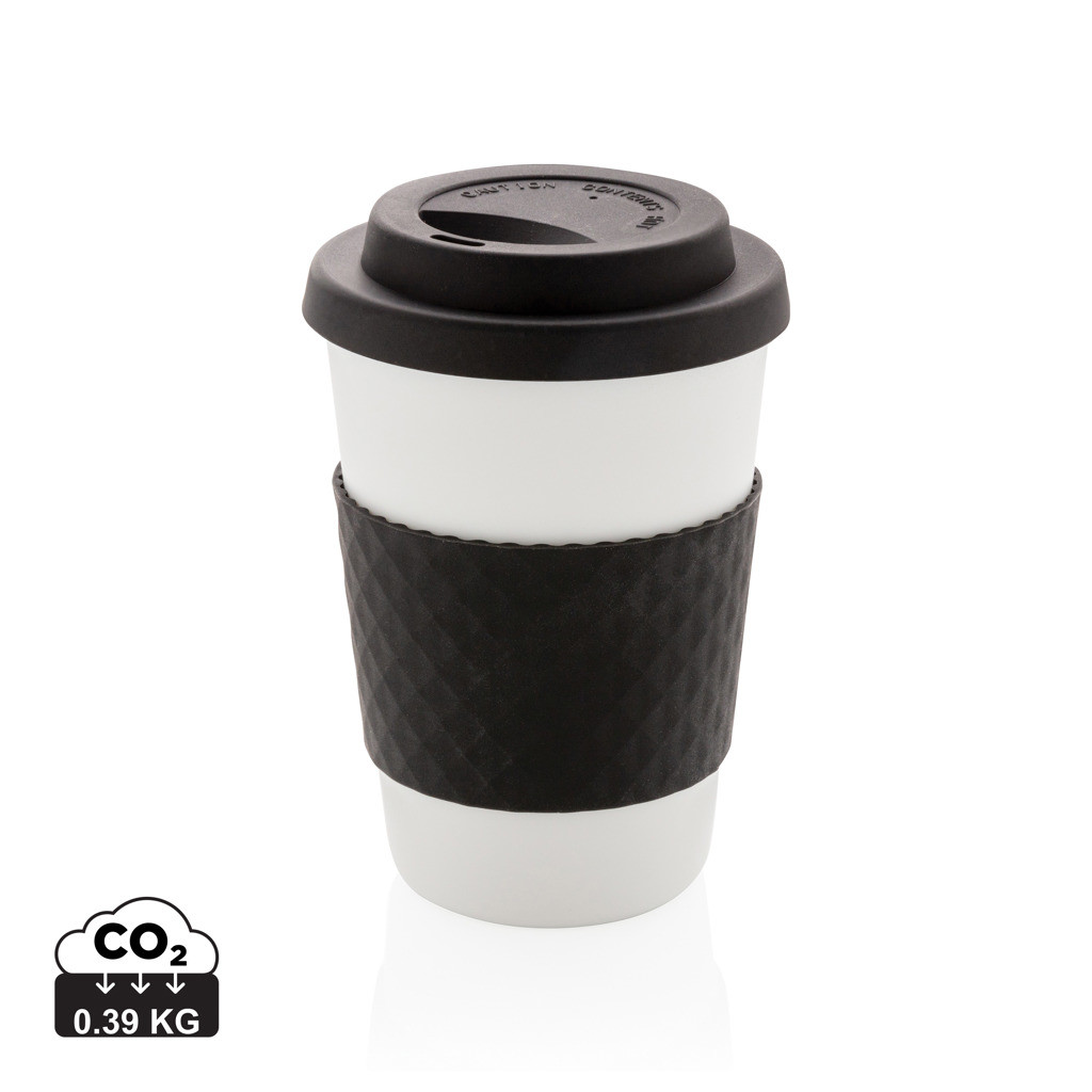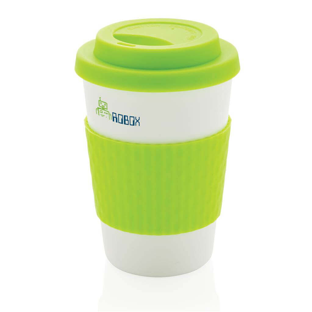 Stop jednorázovým kelímkům. Opakovaně použitelné hrnky nezatěžují životní prostředí a přináší příjemnější požitek z konzumovaného nápoje. Lehký, přesto velmi odolný hrnek vyrobený ze 100 % recyklovatelného PP. Bezpečný pro vroucí nápoje. Silikonové víčko a úchop. Vhodný do mikrovlnky i myčky nádobí. Pasuje pod většinu kávovarů. Objem: 270ml. PMS color 1: Black PMS color 1: Cool Grey 7 PMS color 1: 186C PMS color 1: 286 PMS color 1: 368