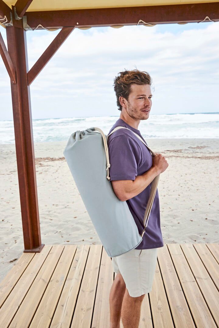 Plátno z organické bavlny | Prémiová těžká tkanina | Skrytá kapsa na zip na cennosti | Zavírání na stahovací lanko | Nastavitelný popruh přes rameno | Vhodné pro většinu velikostí podložky na jógu | Kapacita: 16 litrů | Dodávka bez dekorace / obsahu