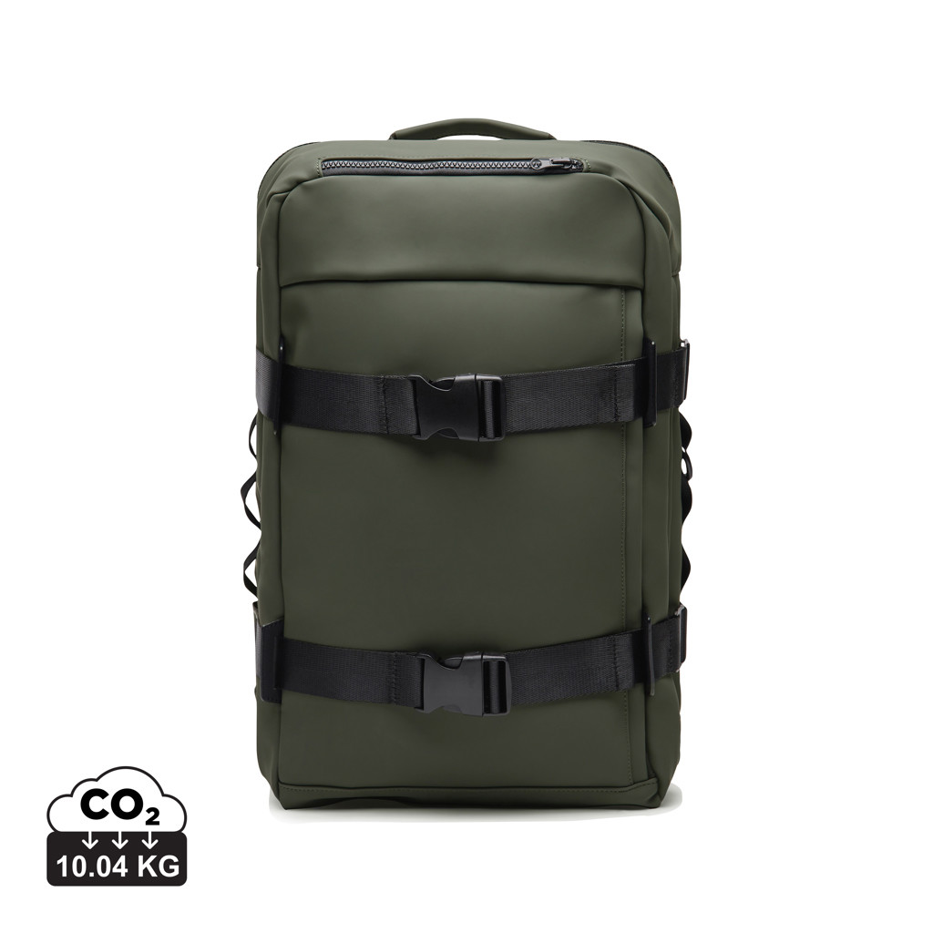 Outdoorový batoh z částečně recyklovaného polyesteru s certifikací RCS. Vnější strana má elegantní PU povrchovou úpravu, síťovaný podklad na ramenních popruzích a zádech pro maximální pohodlí. Batoh je vybaven přihrádkou na notebook, dvěma vnějšími kapsami a prostornou síťovanou částí uvnitř, která udrží vaše vybavení uspořádané. Popruh na zadní straně umožňuje snadné připevnění k tašce na kolečkách. Boční zip nabízí pohodlný přístup do hlavní síťované kapsy. Jedná se o ideální batoh pro každodenní dojíždění do práce i víkendová dobrodružství. Certifikace RCS zaručuje, že celý dodavatelský řetězec recyklovaných materiálů je certifikován. Celkový recyklovaný obsah vychází z celkové hmotnosti výrobku. Tento výrobek obsahuje 16 % recyklovaného polyesteru s certifikací RCS.