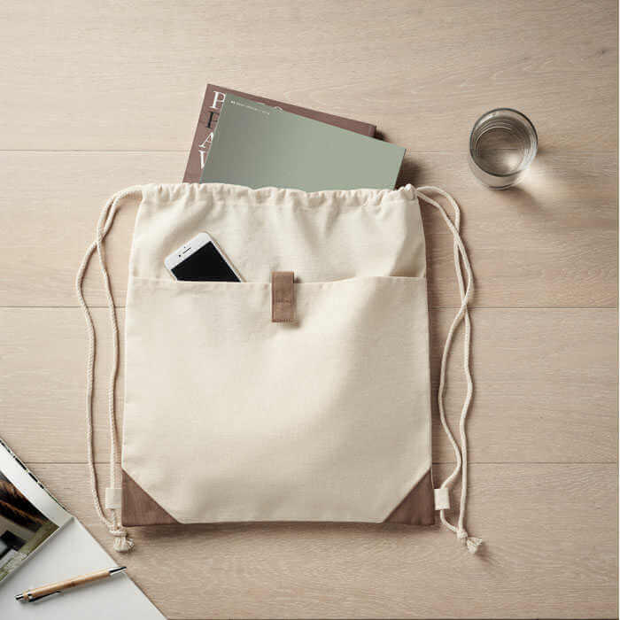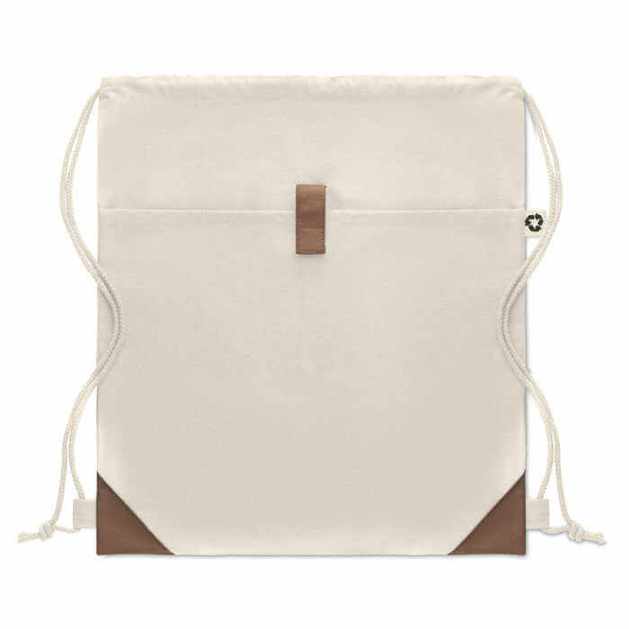 Stahovací taška vyrobená z recyklované bavlny s přírodními šňůrkami. Gramáž 220 gr/m². Šňůrkové tašky se skvěle hodí pro každodenní použití k přenášení věcí do práce, do školy nebo do tělocvičny. Tato taška má kontrastní rohy, které působí jako zajímavý designový prvek. Obsahuje 50 % bavlny a 50 % recyklované bavlny. Hmotnostní limit pro nošení 2,5 kg.