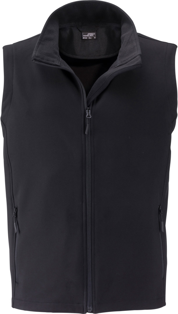 280g/m², 100% polyester Lehký, měkký, 2-vrstvý softshell materiál odpuzující vlhkost, prodyšný, uvnitř bundy mikrofleece, zapínání na zip s chráničem brady, 2 postranní kapsy na zip, 2 vnitřní kapsy