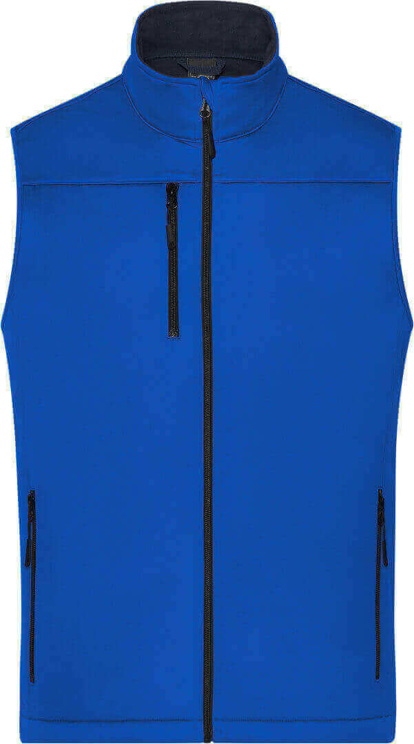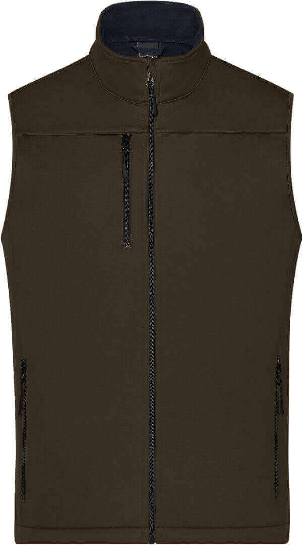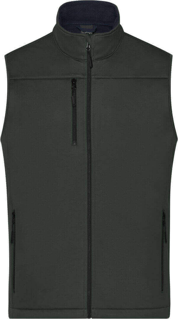 Pánská, 3-vrstvá softshellová vesta, funkční tkanina s membránou TPU, odolná proti větru a vodě (5000 mm), prodyšná, stojatý límec, zipy YKK, 2-směrný zip po celé délce s chráničem brady, kapsa na hrudi se zipem, 2 boční kapsy, švy nezapečatené, vpředu síťovaná podšívka, vpředu přístup k dekorací, vnitřní strana z měkkého mikrofleecu, propustná pro vodní páry. Vyrobena ze 100% polyesteru.