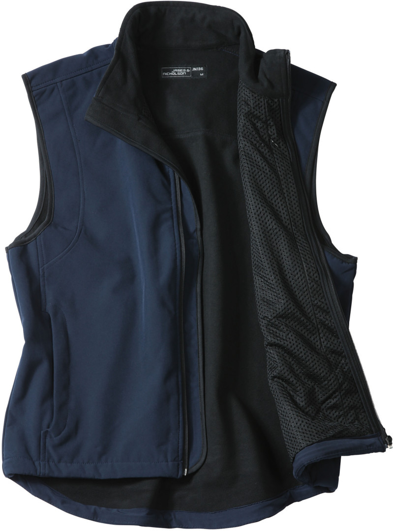 330g/m², 95% polyester, 5% elastan, vnější vrstva: funkční 3 vrstvý materiál s TPU membránou, vnitřní vrstva: mikrofleece zip v podšívce, náprsní kapsa a 2 boční kapsy na zip, v lemu je stahovací šňůrka se zarážkami pro nastavení velikosti, vnitřek vesty je v přední části ze síťoviny, prodyšný materiál, který je odolný vůči větru a vodě (5.000mm)