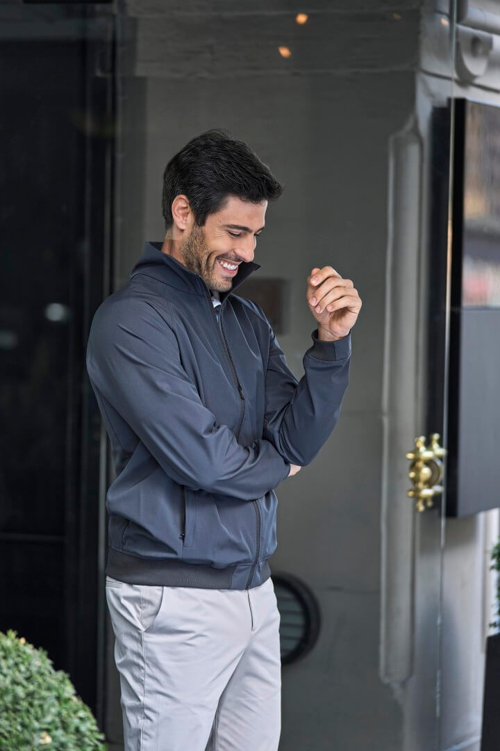 Svrchní vrstva: 90 % recyklovaný polyester / 10 % elastan, podšívka: 100 % recyklovaný nylon 380T | Funkční a lehká bunda Club | Vysoká kvalita | Pružný recyklovaný materiál | Čistý a sportovní vzhled | Kvalitní zip SBS | 2 velké přední kapsy | Vnitřní kapsa | Praktické řešení žeber na spodní straně a na lemu rukávů | Vodoodpudivá | Nastavitelný lem se stahovací šňůrkou / zarážkou