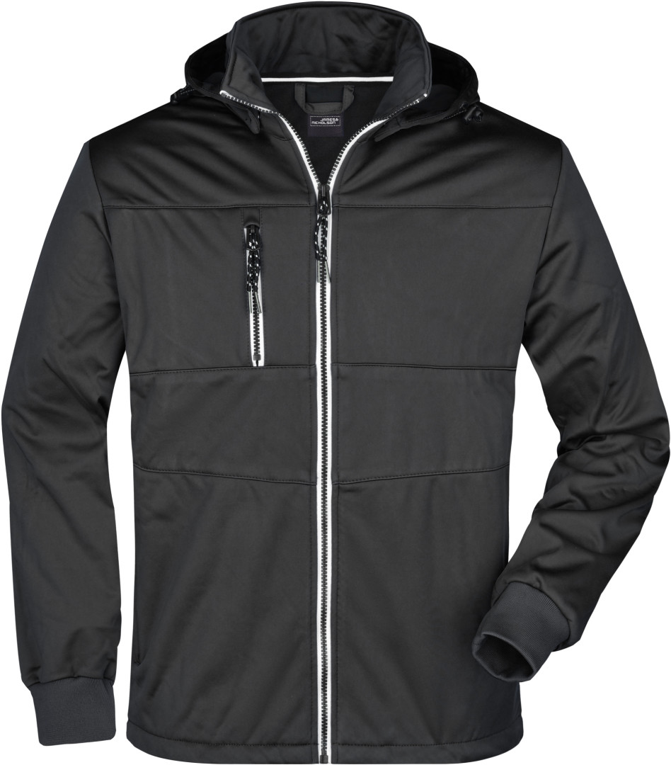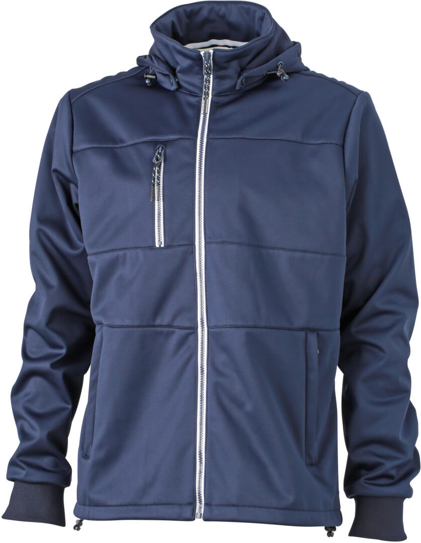 290g/m², 100% polyester stojací límec, odnímatelná kapuce, elastická šňůra se zarážkou na stahování kapuce a bundy, zip a linka na boku v kontrastní barvě, 2 boční kapsy a 1 náprsní kapsa na zip, pletené manžety na rukávech, větru a voděodolná (5000mm), prodyšná