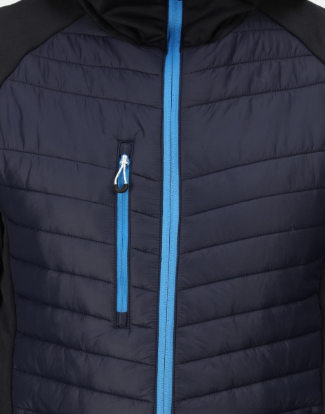 90% polyester, 10% elastan, panely těla: 100% polyamid, lehká recyklovaná výplň Warmloft, odolná vodoodpudivá úprava, Power stretch kapuce, rukávy a boky těla, zapínání na zip v kontrastní barvě s vnitřní klopou a chráničem brady, v kontrastní barvě, 2 spodní kapsy na zip v kontrastní barvě, ideální pro dekorování se strategicky umístěnými přepážkami