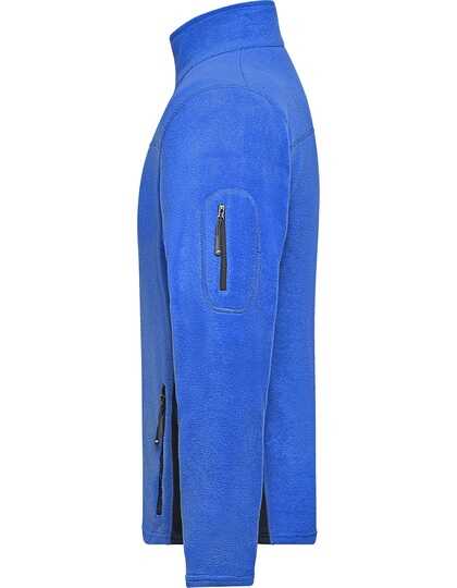 Odolná fleecová bunda ze směsi materiálu | Mikroflís se snadnou údržbou a úpravou proti žmolkům | Elastické softshellové vsadky v kontrastní barvě na rukávech a z boku | Zapínání na skrytý zip s chráničem brady | Stojáček | 2 boční kapsy a kapsa na rukávu se zapínáním na zip