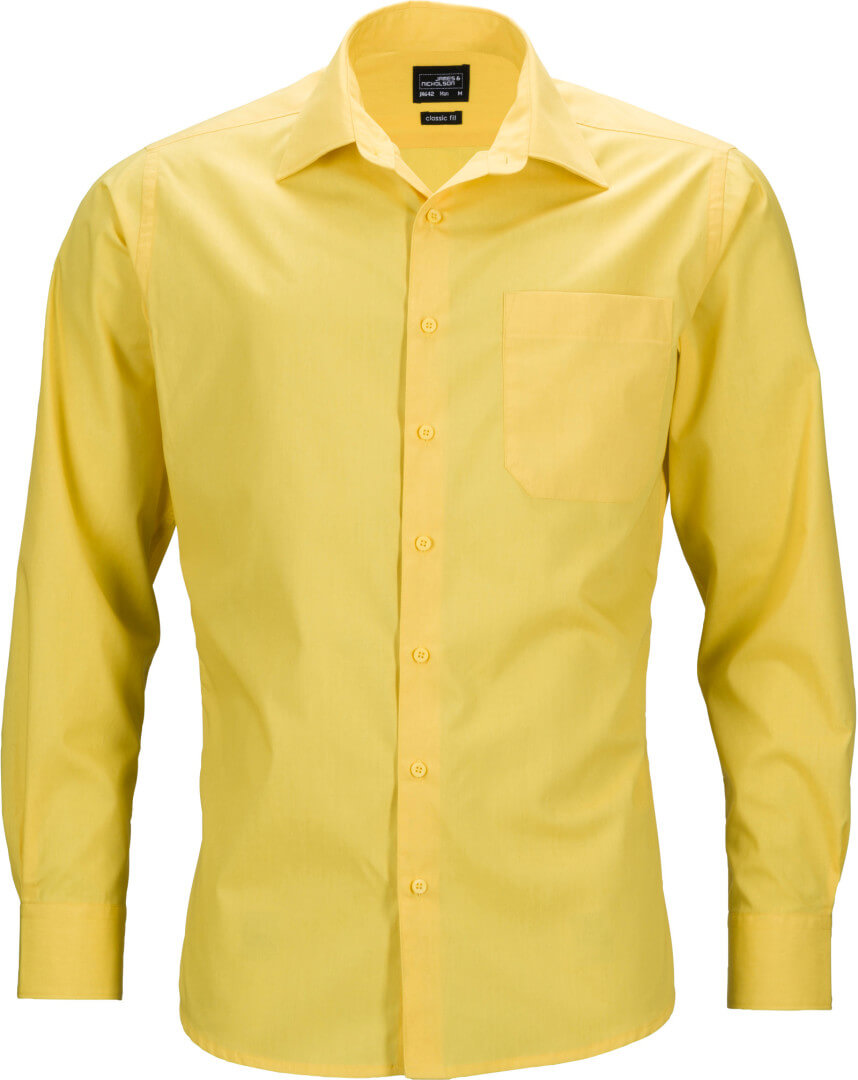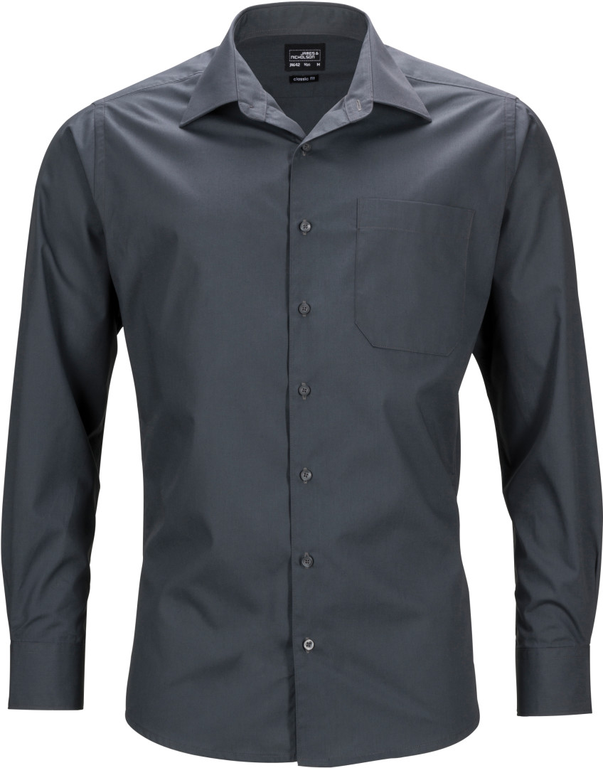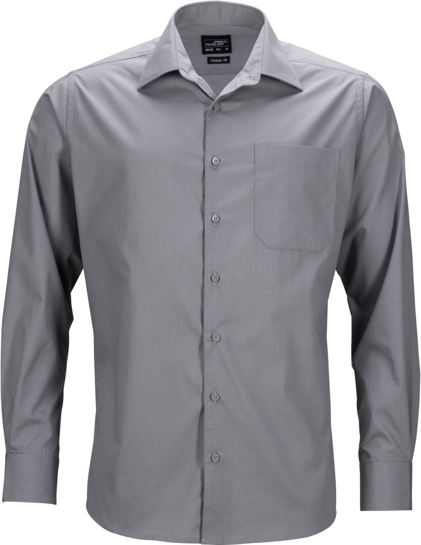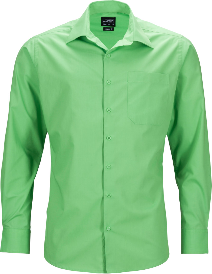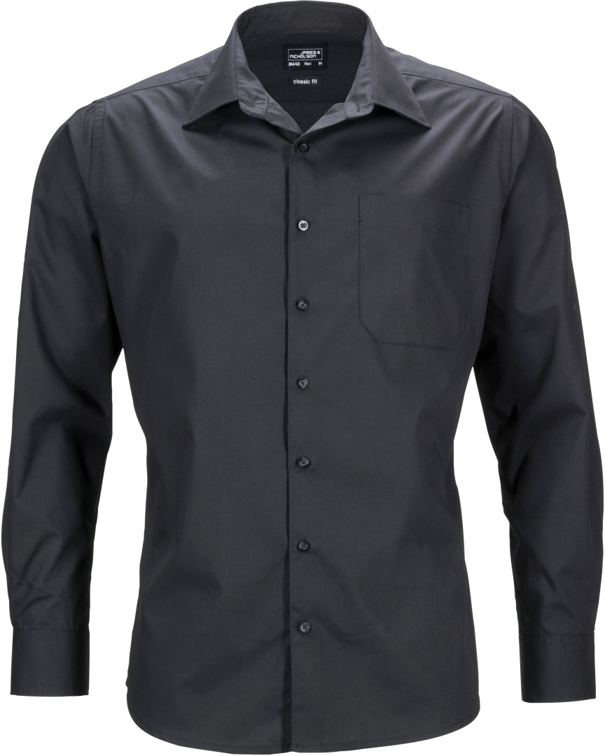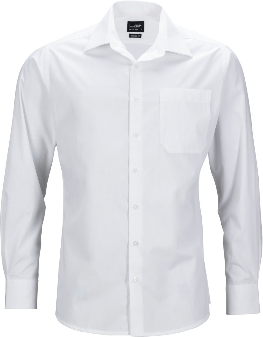105g/m², 50% bavlna, 50% polyester klasický lehce vypasovaný střih, klasický límec, sklad na zádech, náprsní kapsa, manžety na rukávech, zaoblené okraje, snadná údržba, praní na 60°