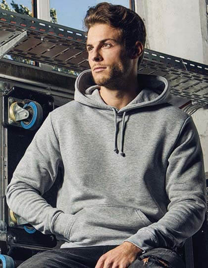 Kapsa na váčku. Dvojitá kapuce s podšívkou. Elastanové rukávové manžety a pas. 80% česaná bavlna / 20% polyester (Sportovní šedá: 85% česaná bavlna / 15% viskóza)