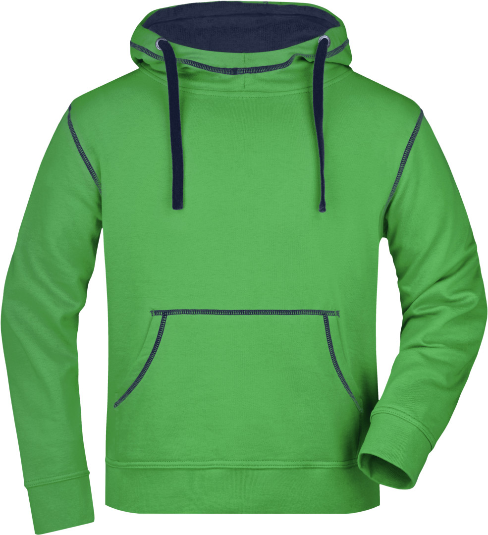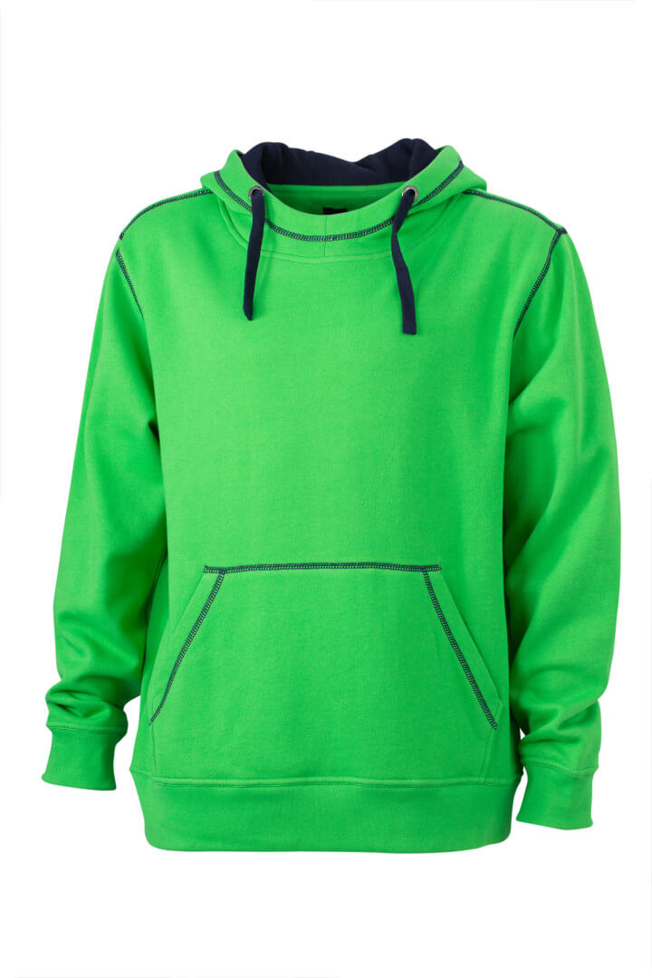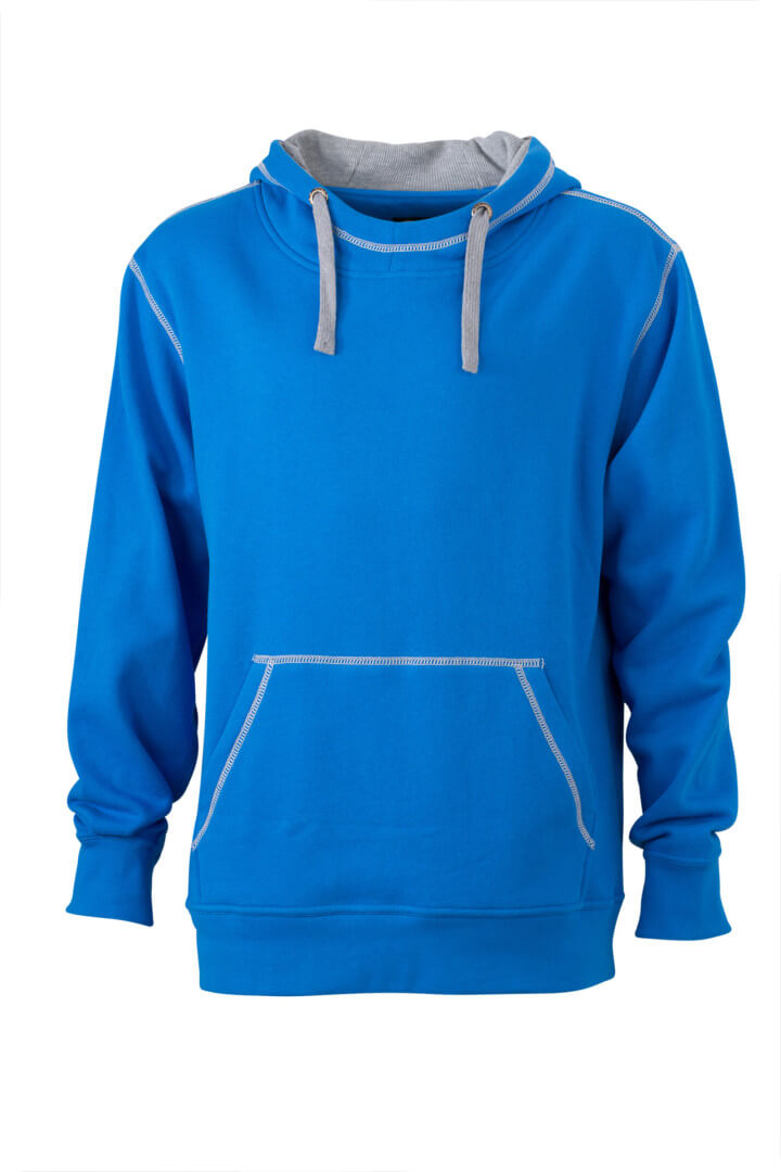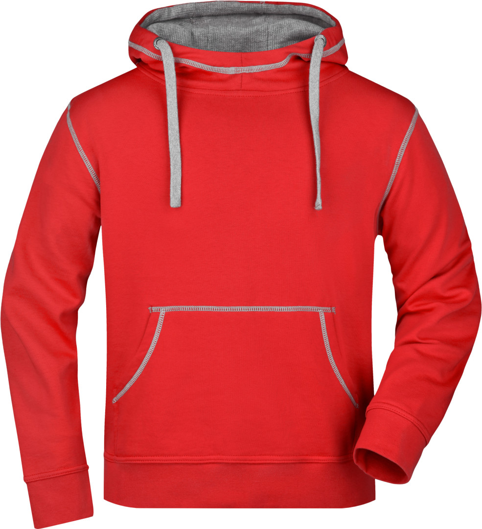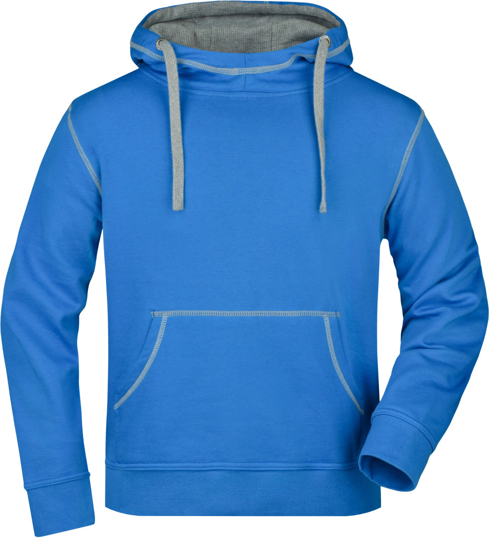 280g/m², 80% bavlna, 20% polyester dvojitá kapuce se stahovací šňůrkou v kontrastní barvě, kontrastní prošití i vnitřek kapuce, měkký materiál, uvnitř počesaný, manžety s elastanem, ploché švy, klokaní kapsa