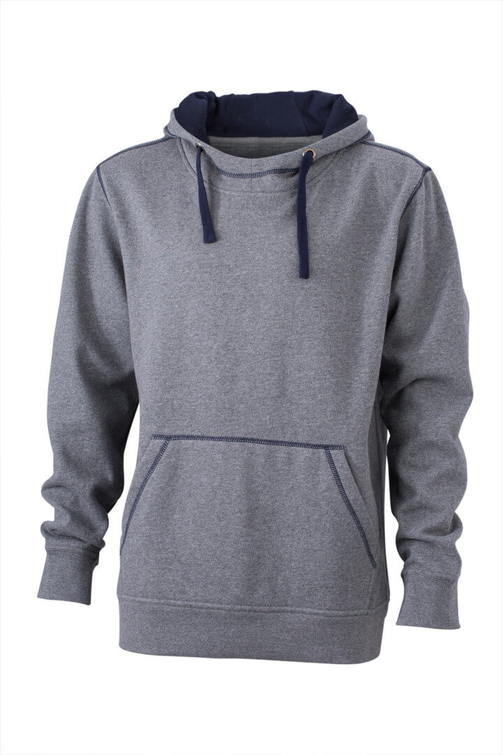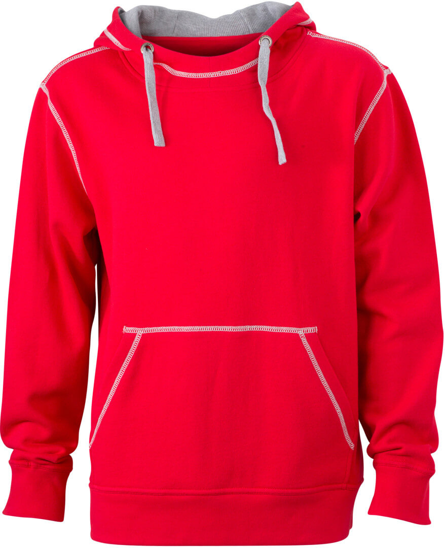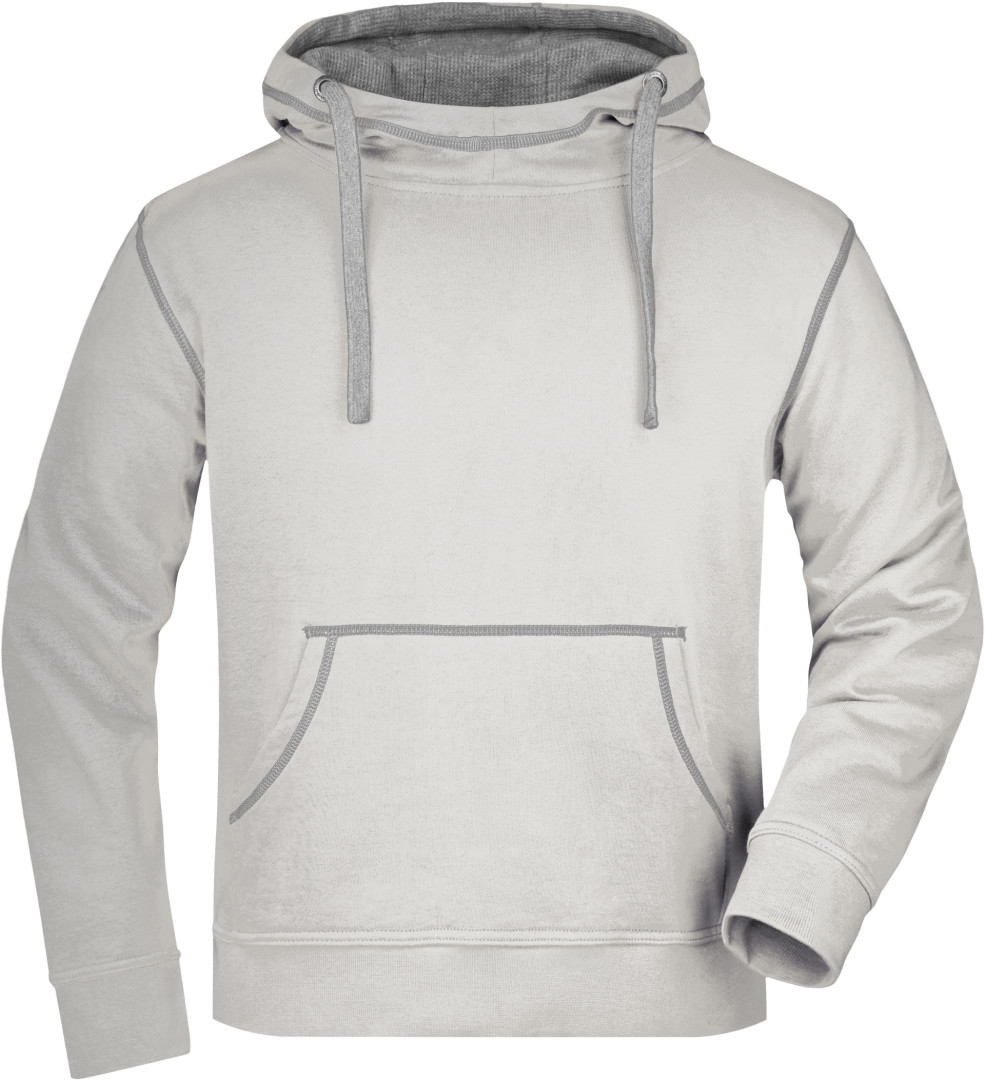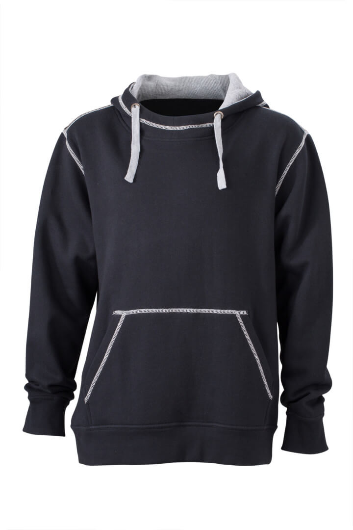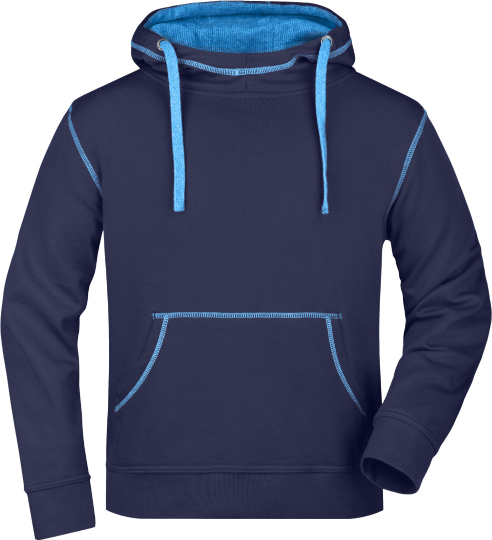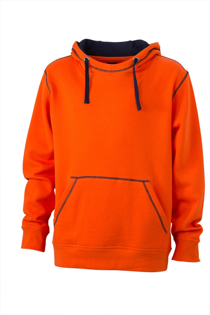 280g/m², 80% bavlna, 20% polyester dvojitá kapuce se stahovací šňůrkou v kontrastní barvě, kontrastní prošití i vnitřek kapuce, měkký materiál, uvnitř počesaný, manžety s elastanem, ploché švy, klokaní kapsa