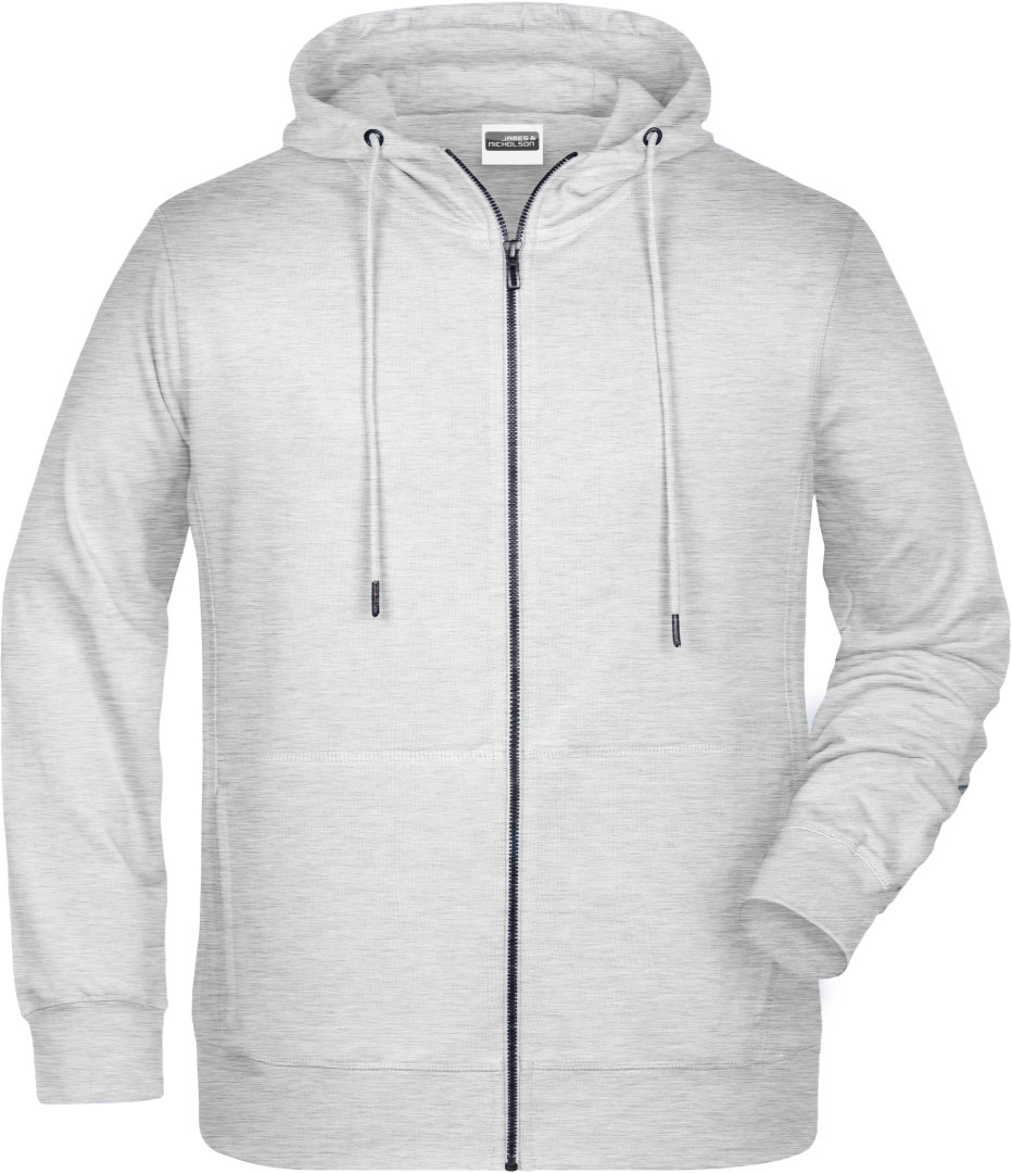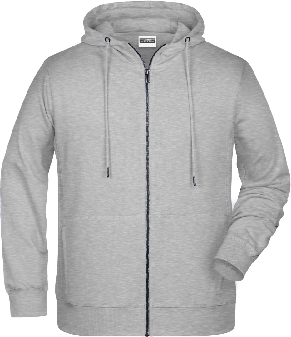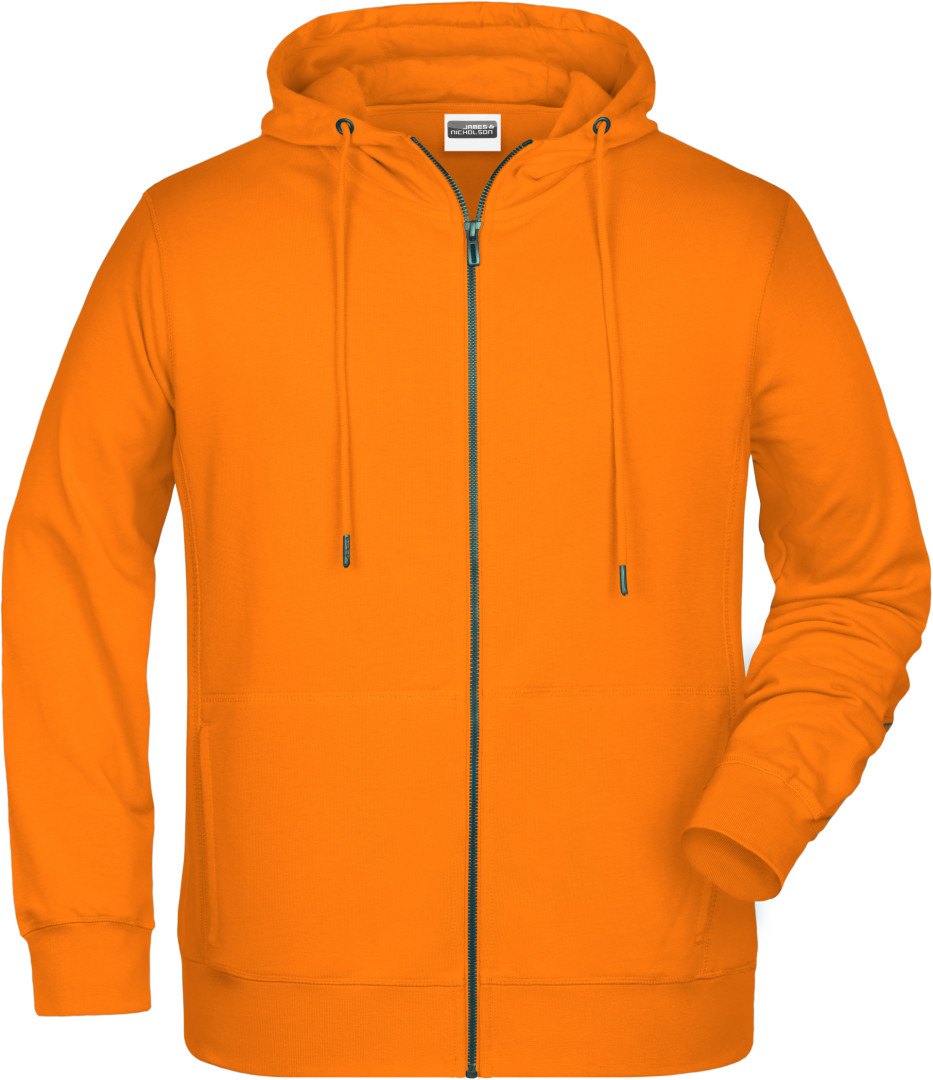 300g/m², 85% česaná Bio bavlna předepraná proti srážení, 15% polyester, french terry Boční švy v přední části, dvouvrstvá kapuce se stahovací šňůrkou, manžety s elastenem, klokaní kapsa, YKK zip, uvnitř zdrsněná, odtrhávací štítek