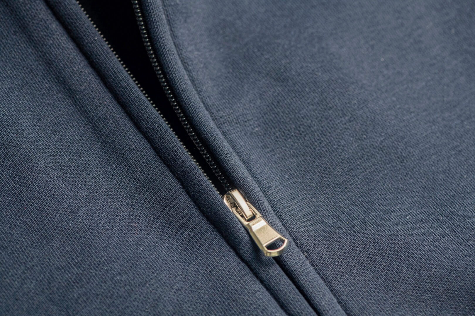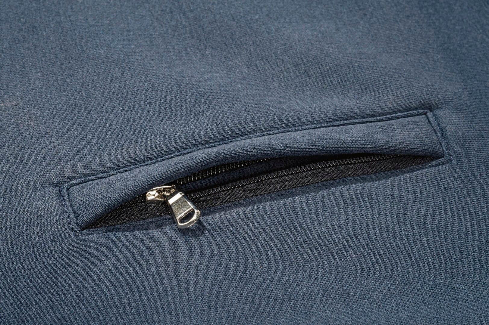 Kruhově dopřádaná česaná bavlna / recyklovaný polyester (česaná vnitřní strana) | Měkká směsová tkanina | Moderní regular fit | Ochrana proti žmolkování a sražení, stálobarevné | Dvě boční kapsy na zip a dvě vnitřní kapsy | Šev, okraje kapes a manžety jsou vyrobeny z vysoce kvalitního 1 x 1 žebrovaného úpletu | Všechny švy jsou vylepšeny plochým dekorativním prošíváním | V každém tři kovová starožitná očka (ošoupaná) | Široká šňůrka ve stejné barvě | Bez štítků