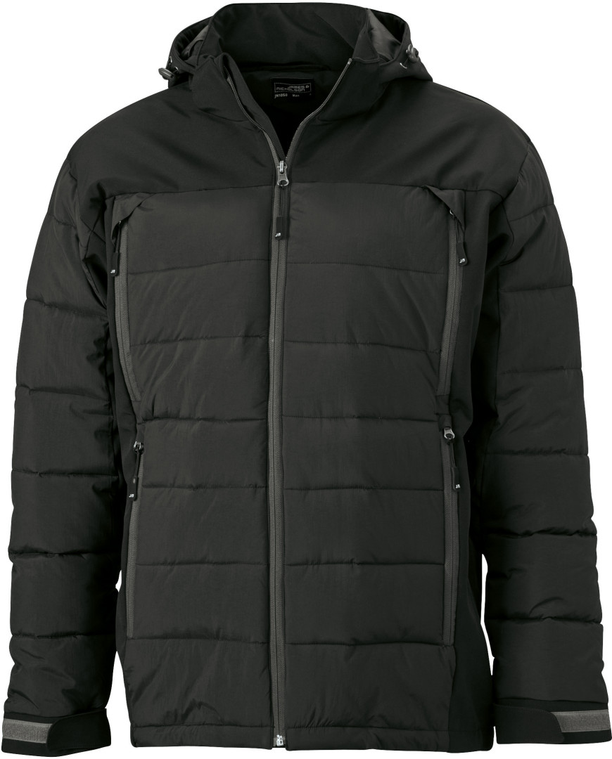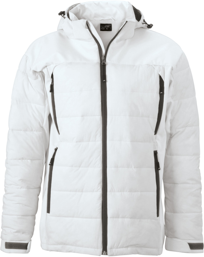 95% polyester, 5% elastan, vnější vrstva: 100% polyamid, prostřední vrstva: 100% polyester, vnitřní vrstva: 100% polyester 4 přední kapsy s kontrastními zipy, vnitřní kapsu na zip, vnitřní kapsu ze síťoviny a po celé své délce zip s ochranou na bradu, softshellová kapuce je odnímatelná a nastavitelná, z atraktivního materiálu, který je odolný vůči vodě a větru