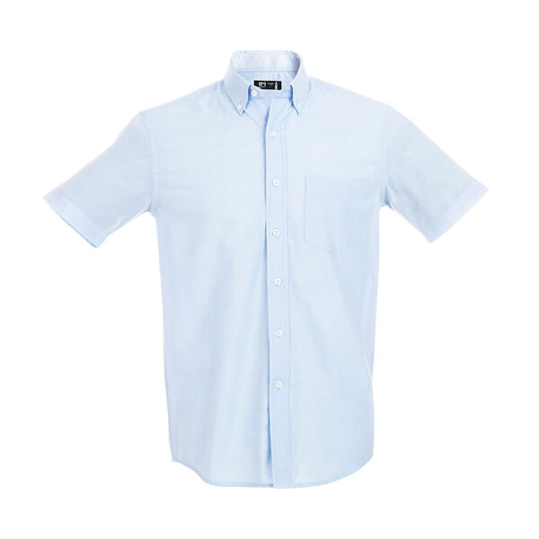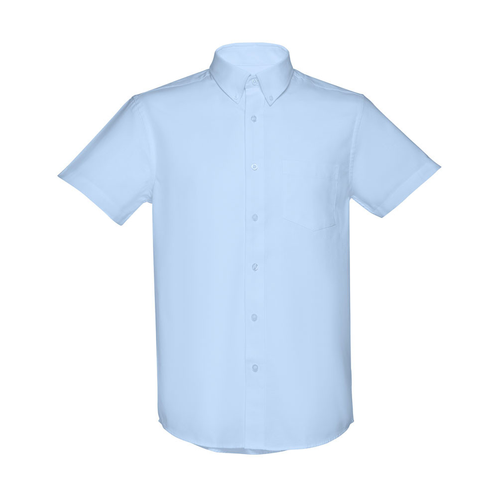 Pánská oxfordská košile, 70% bavlna a 30% polyester (130 g/m²). Krátký rukáv. Kapsa na levé straně. Límec s 2 knoflíky. Léga se 7 perlovými knoflíky.