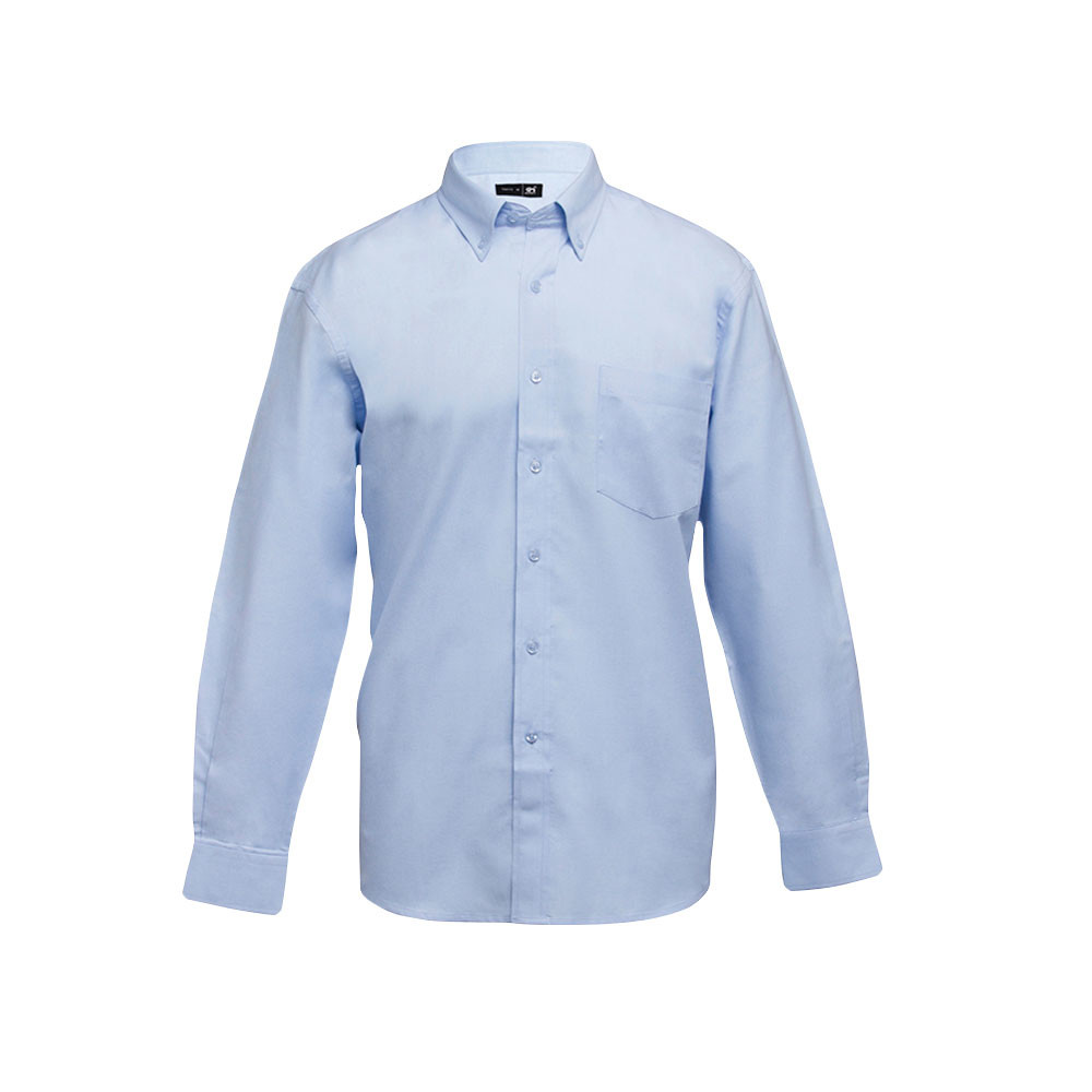 Pánská oxfordská košile, 70% bavlna a 30% polyester (130g/m²). Dlouhý rukáv. Kapsa na levé straně. Límec s 2 knoflíky. Nastavitelné manžety s 2 knoflíky a léga se 7 knoflíky.
