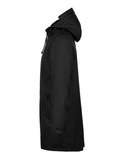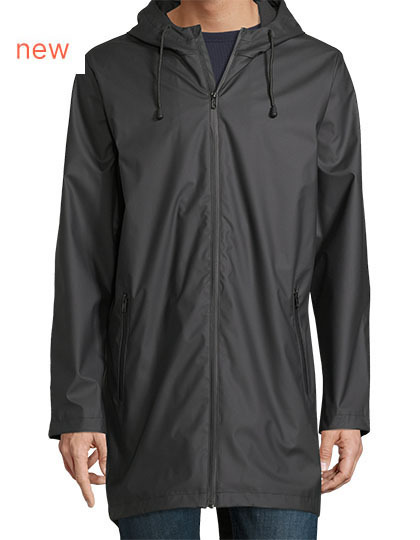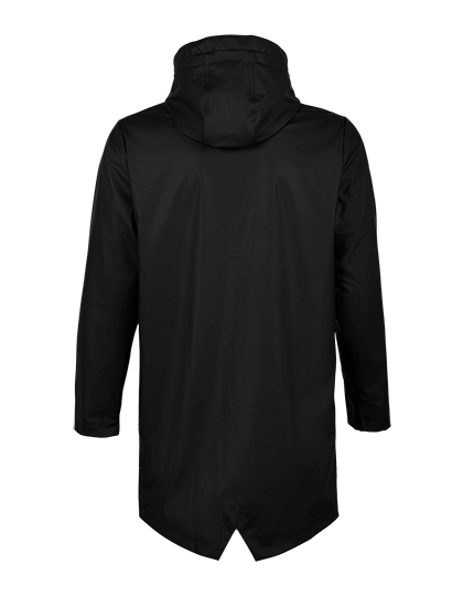 Polyester 220, PU potah, polyesterová podšívka taft 210T, podšívka kapuce TC | Vodotěsný 5 000 mm | Zapínání na voděodolný zip | Kapuce se stahovacími šňůrkami | 2 voděodolné boční kapsy na zip | Prodloužená zadní část | Dvojitě svařované švy | Bez štítku.