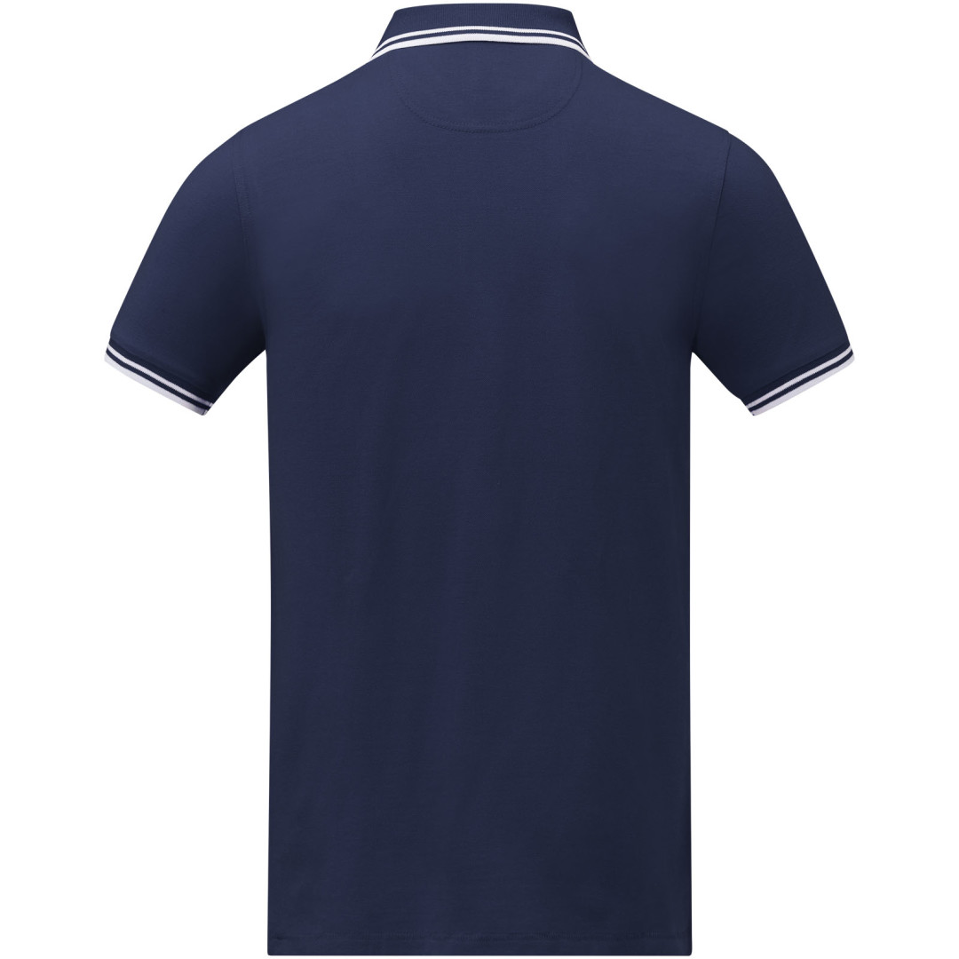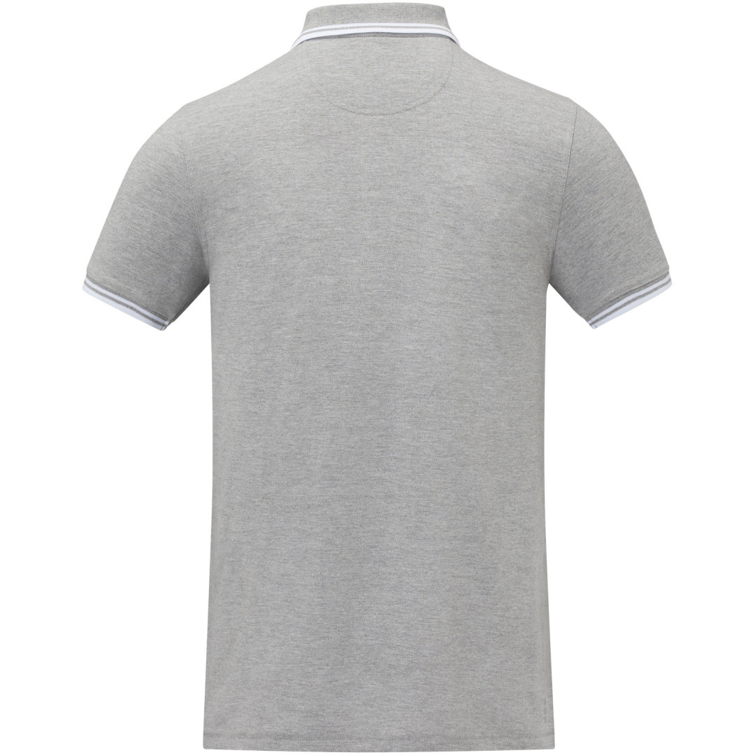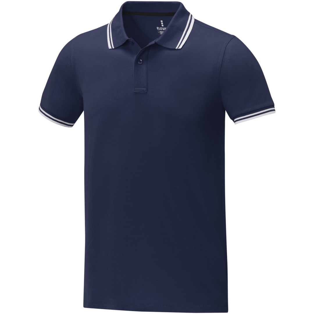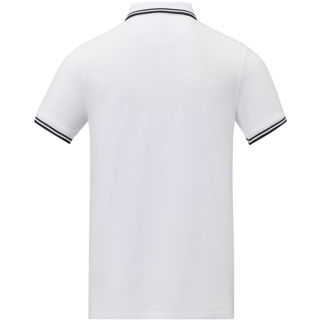 Plochý žebrový límeček. Žebrový úplet manžetek. Kontrastně barevný lem na límci a rukávech. Zapínání na dva knoflíky. Detaily s vyšívacím stehem. Saténová lemovka výstřihu. Boční rozparky se saténovou lemovkou. Sedlo. Předsunutá zpevňující lemovka výstřihu s řetízkovým švem. Gravírované knoflíčky ve stejné barvě. Potisk štítku technologií heat transfer pro větší pohodlí. 200 g/m2