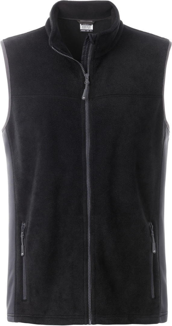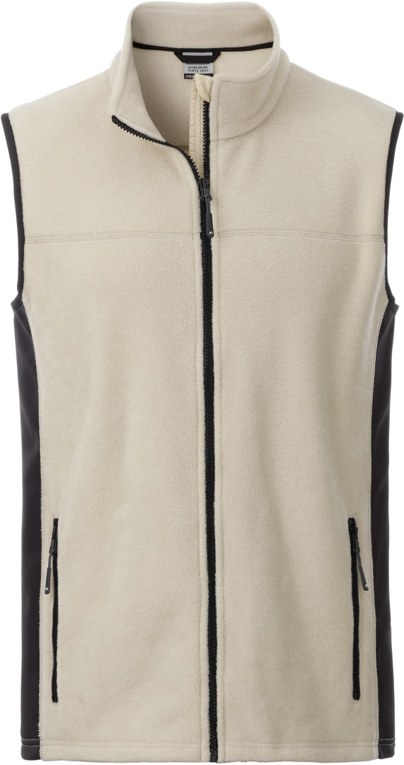 280g/m², 100% polyester protižmolkující microfleece nenáročný na údržbu, po stranách elastické softshellové vklady v kontrastní barvě, stojáček, skrytý zip s ochranou brady