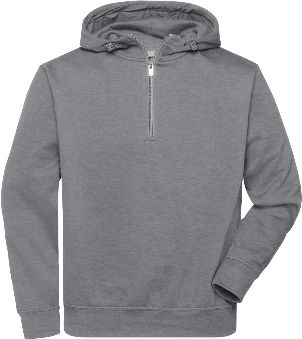 Pánská pracovní mikina z organické bavlny s dvouvrstvou pružnou kapucí a nastavitelnou šňůrkou, žebrovanými manžetami na rukávech s okraji a elastanem, zipy YKK, uvnitř zdrsněná, doporučené prát na 60 °, vhodná pro sušení v sušičce.
