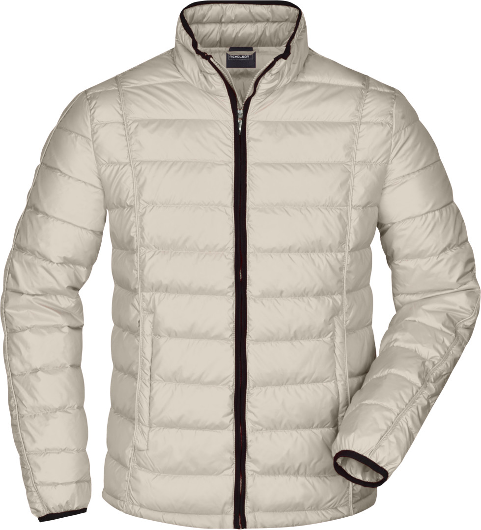 vnější vrstva: 100% polyester, podšívka: 100% polyester, výplň 90% chmýří, 10% peří bunda se stojáčkem, 2 boční kapsy, 1 vnitřní kapsu na zip a kontrastní lemování kolem zipu, z příjemného materiálu, který je odolný vůči větru a vodě