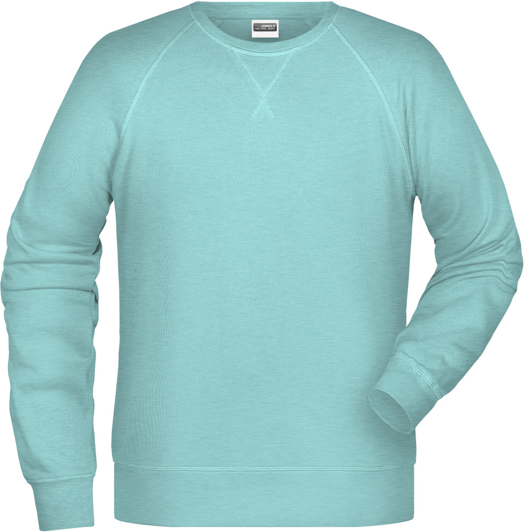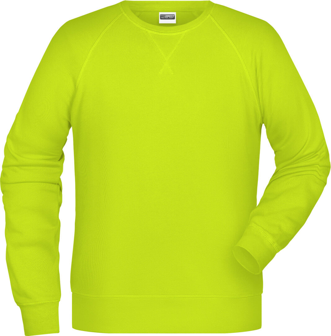 300g/m², 85% česaná Bio bavlna předepraná proti srážení, 15% polyester, french terry Kulatý výstřih, elastické manžety na rukávech a lemovce u krku, odtrhávací štítek