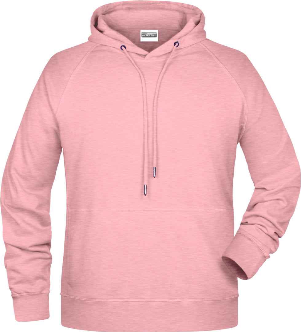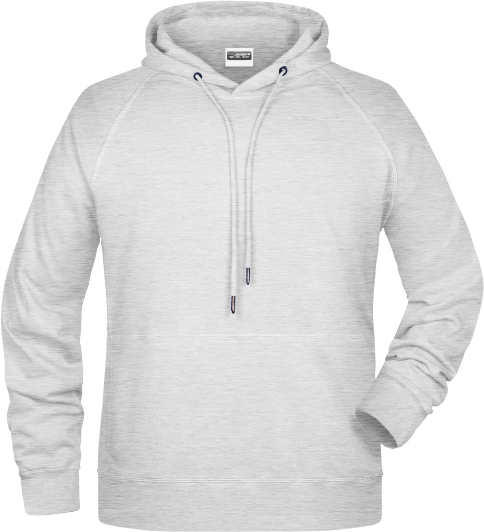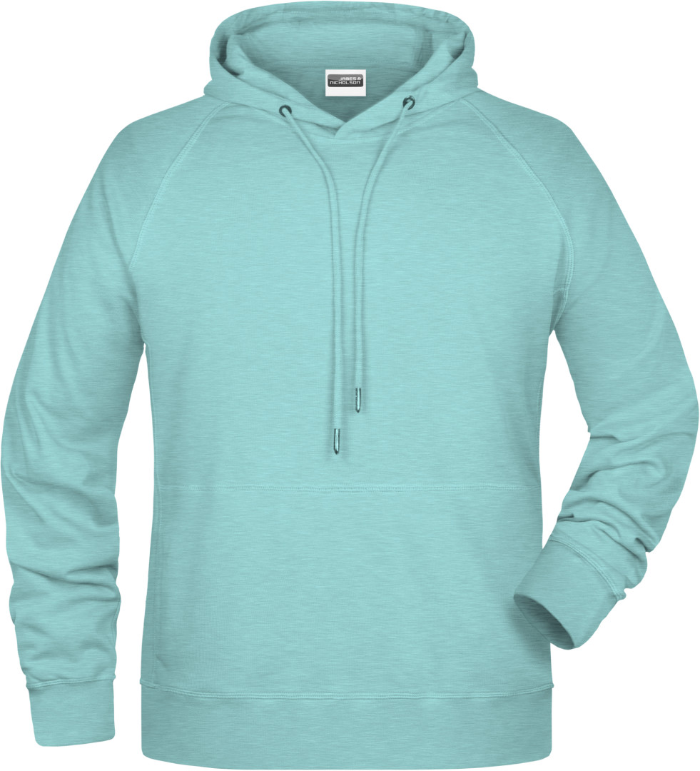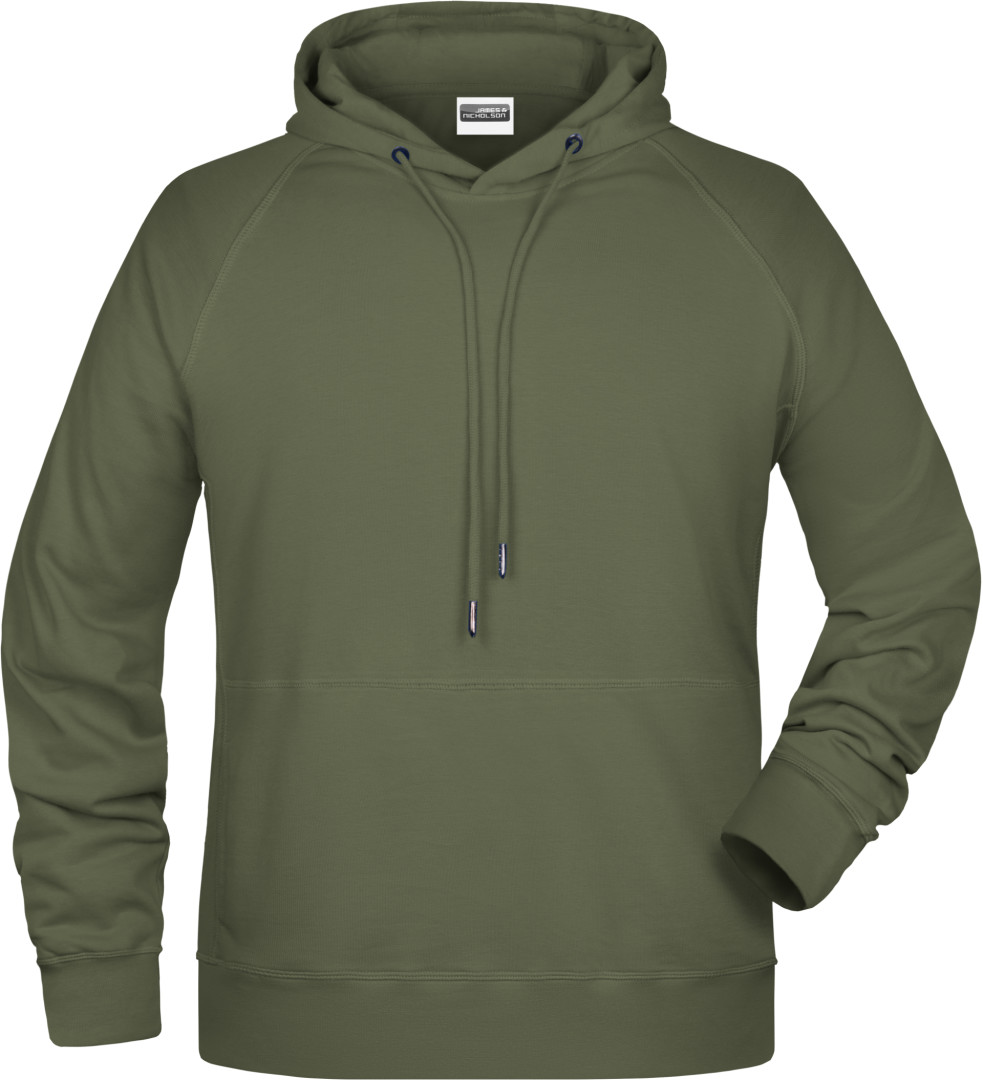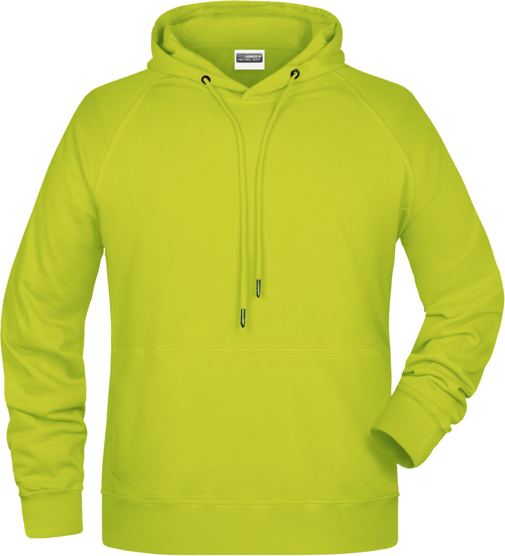 300g/m², 85% česaná Bio bavlna předepraná proti srážení, 15% polyester Boční švy v přední části, dvouvrstvá kapuce se stahovací šňůrkou, manžety s elastenem, klokaní kapsa, uvnitř zdrsněná , odtrhávací štítek