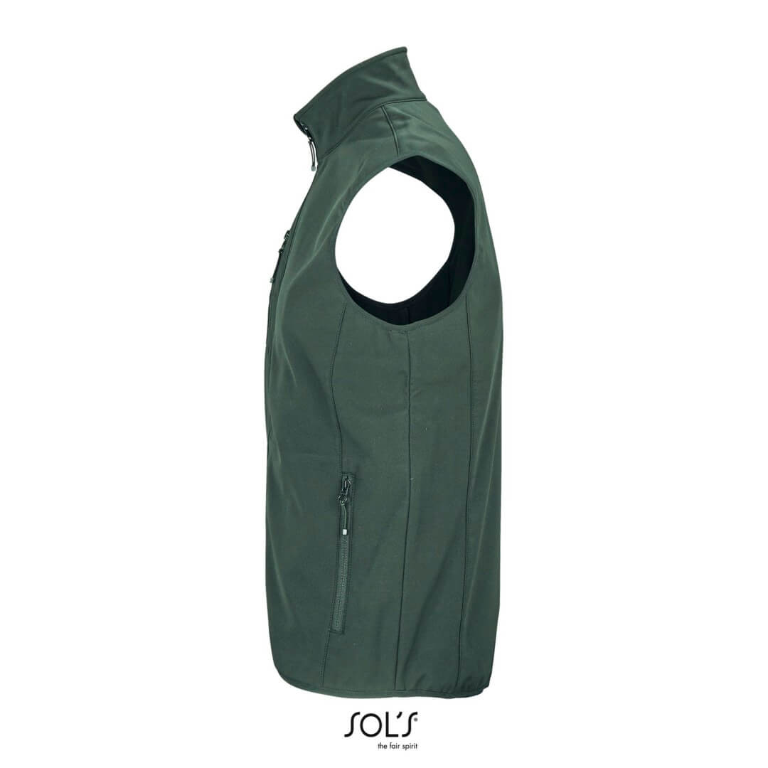 Recyklovaný polyester / elastan – 3 vrstvy, vnitřní flís: 100% polyester | Udržitelná tkanina | Softshell 270 | Pohodlný střih | Otevírání na zip | 2 boční kapsy a 1 kapsa na hrudi se zipem | Kontrastní zipy | Elastický šikmý střih v průramcích a na lemu | Odtrhávací štítek