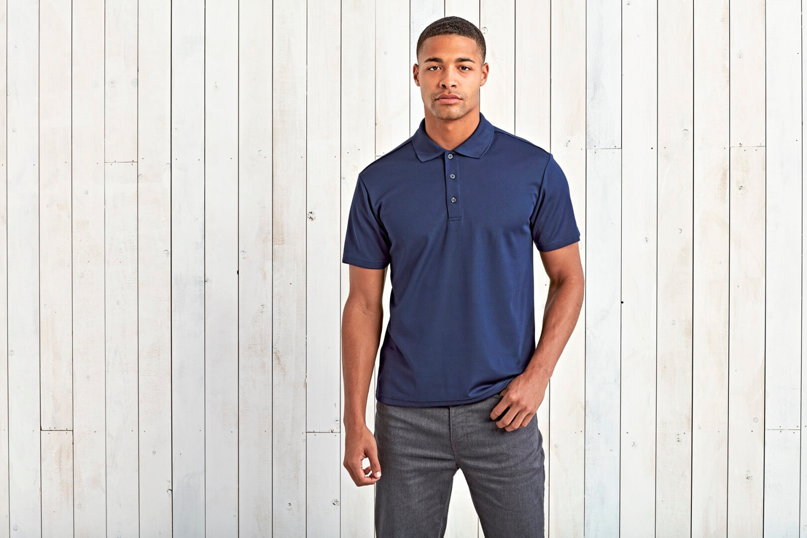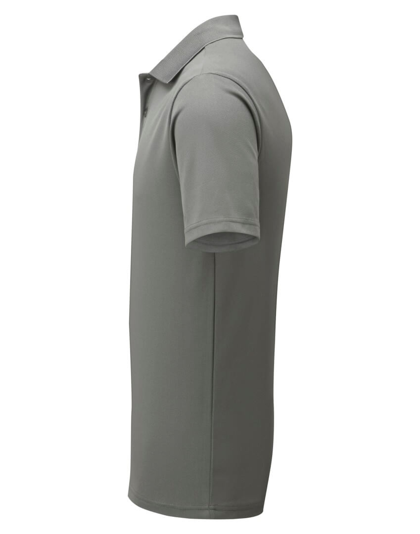 Recyklovaný polyester ze spotřebitelských plastů | Polyesterová příze recyklovaná technologií spun-dyed | Žebrovaný límeček | Tříknoflíková léga | Boční průduchy, prodyšné | Odvádění vlhkosti | Vynikající stálost barev vůči UV záření | Proces barvení šetrný k životnímu prostředí s nižší spotřebou vody a méně chemikáliemi a nižšími emisemi CO2