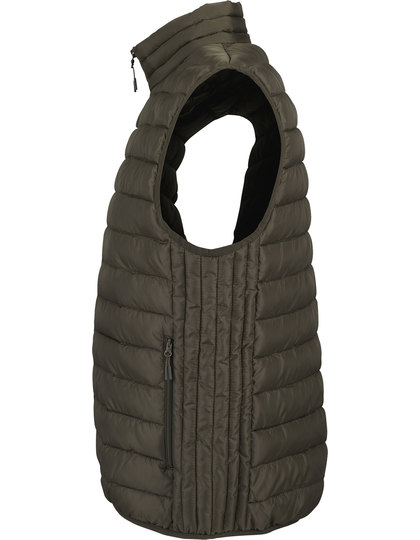 Vnější materiál a podšívka: 100 % polyester, zateplení: 100 % polyesterové peří. Taft 280T. Přední zapínání a boční kapsy se sladěným nylonovým zipem. Sladěné kovové posuvníky s černými stylovými jezdci. Vysoký límec. Sladěné elastické lemování na průramcích a spodní části. Úložný vak. Bez štítku.
